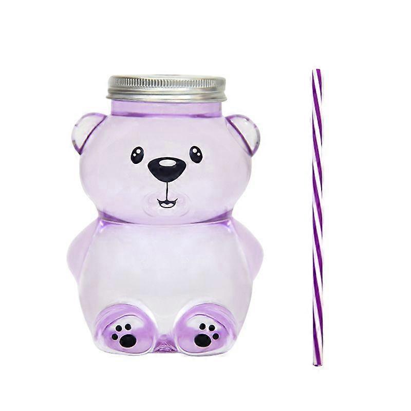 Kawaii Bear Sippy Cup, 350ml Food Grade PP Material Clear Bear Straw Cup with Lid and Straw for Juice Milk Tea Smoothies Infused Water Beverage