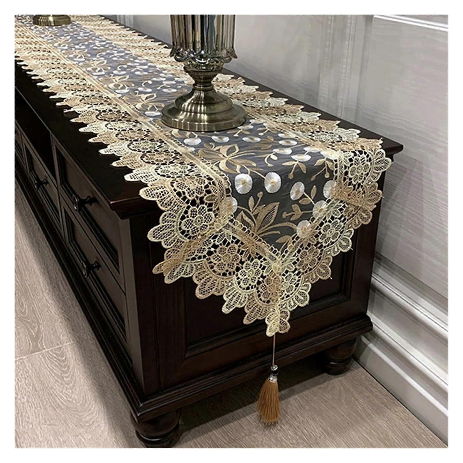 Lace Table Runner with Tassels Embroidered Dining Table Flag for Wedding Party Decor 40x180cm Type 4