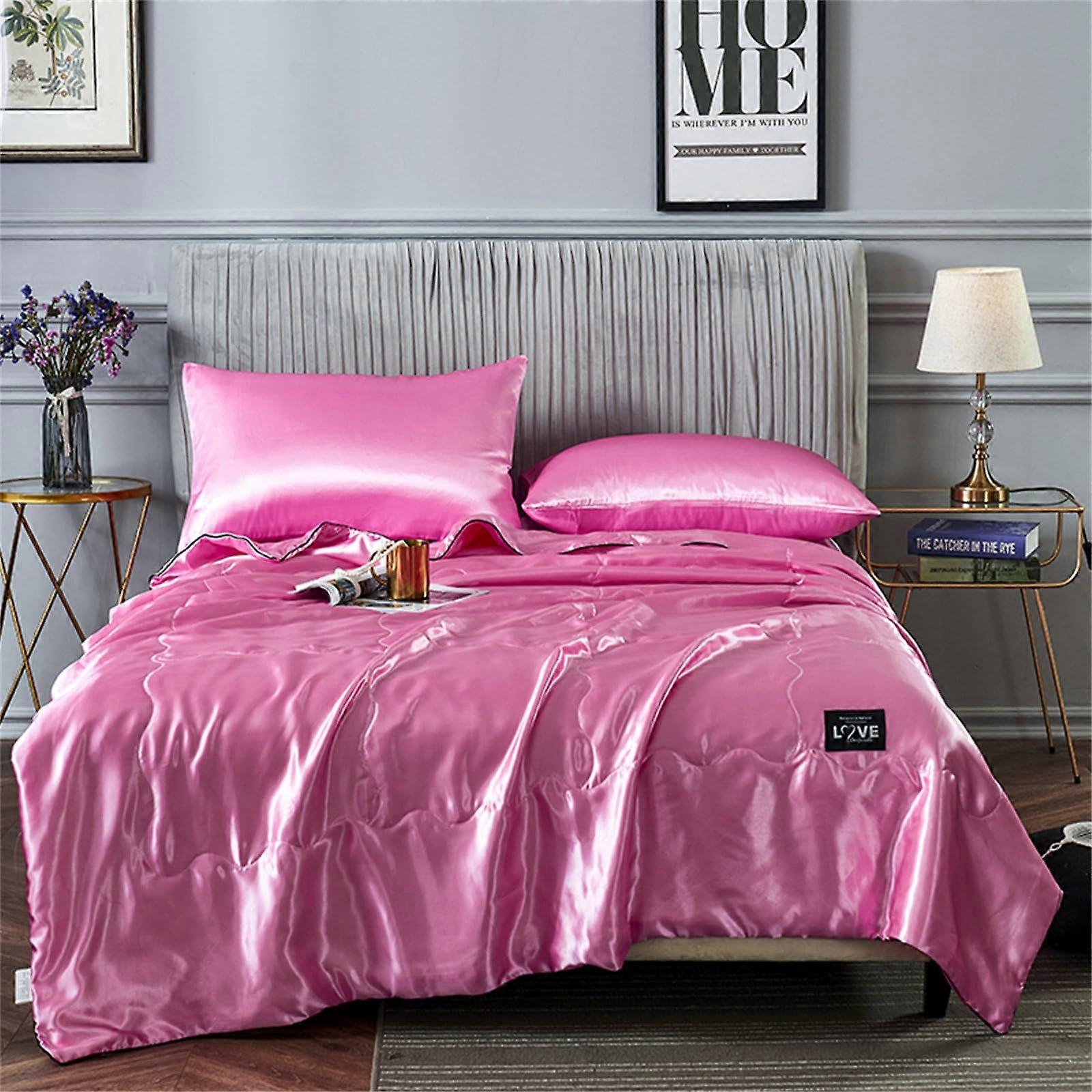 Coverless Duvet Satin Quilted Bedspread Lightweight All Season Summer Blanket Pink 200x230cm