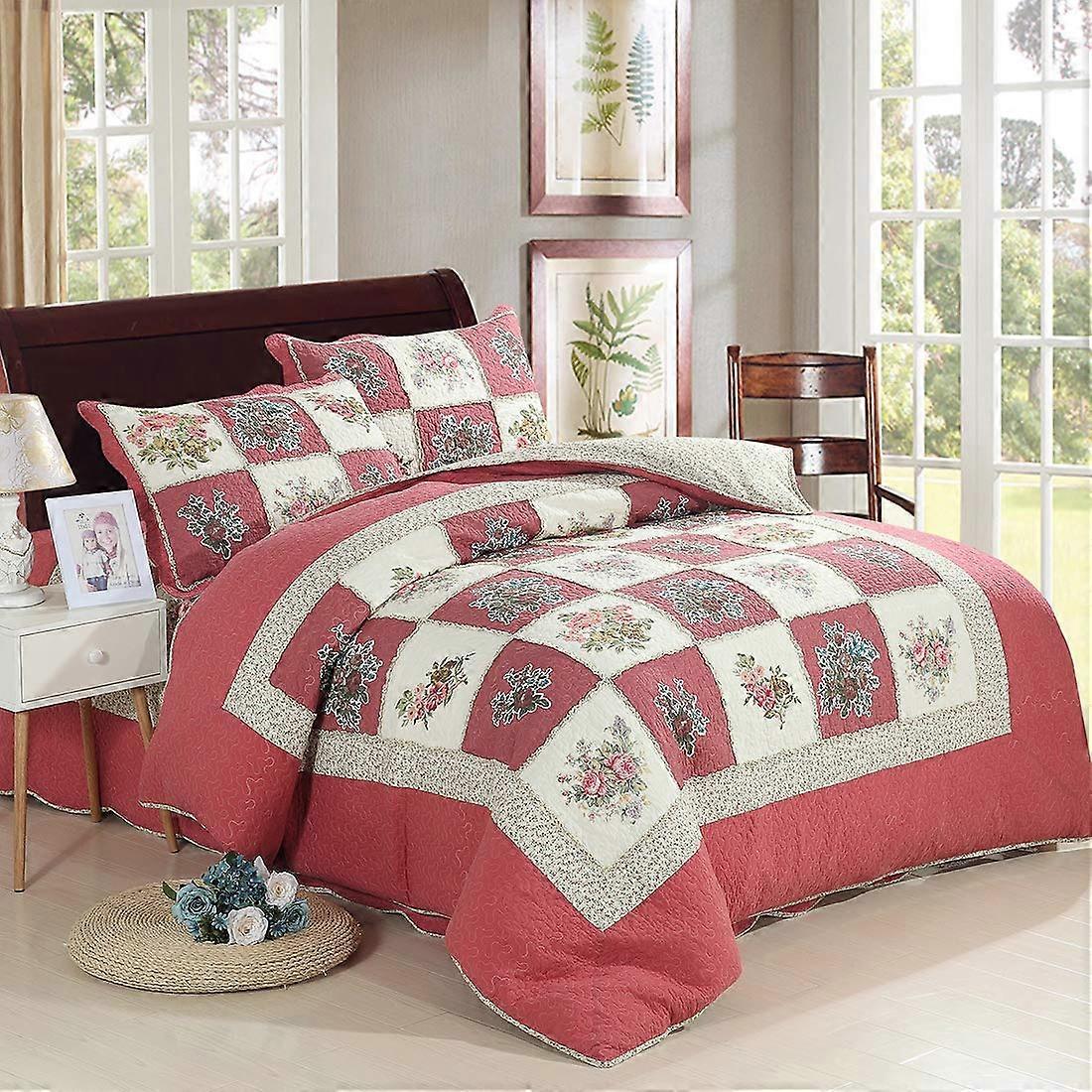 Queen Size Floral Ruffle Quilt Set 100% Cotton Reversible Patchwork Bedspread with 2 Shams