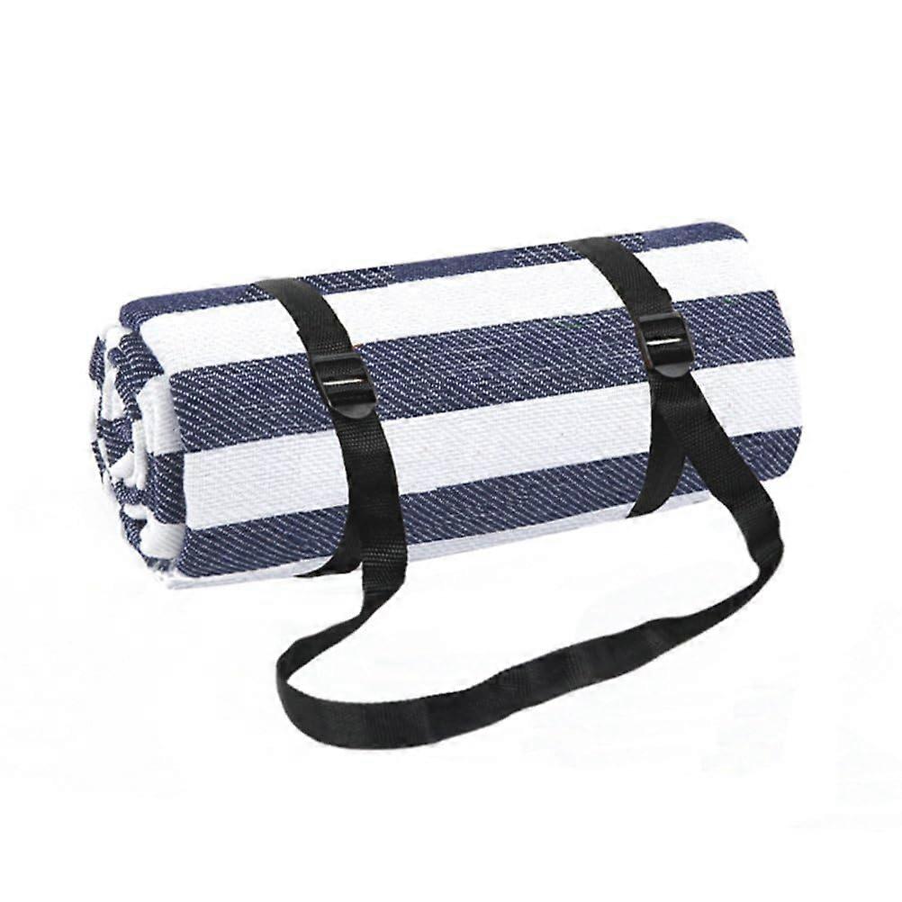 Waterproof Outdoor Camping Beach Picnic Blanket Large Striped Portable Mat 150x200cm Blue