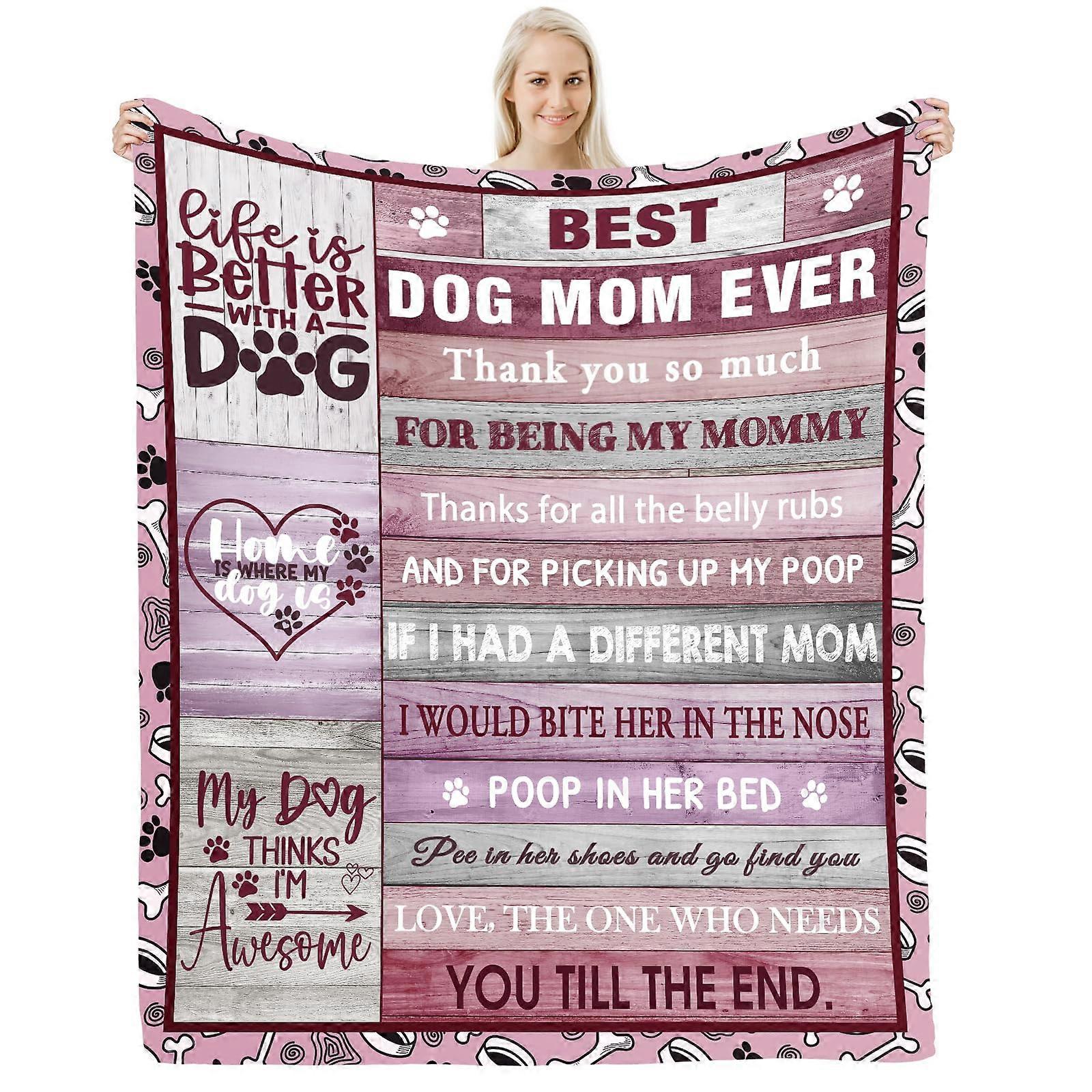 Dog Mom Blanket 50'x60' Soft Throw for Women, Dog Lover Gifts for Pet Owners, Cozy Sofa Bedding