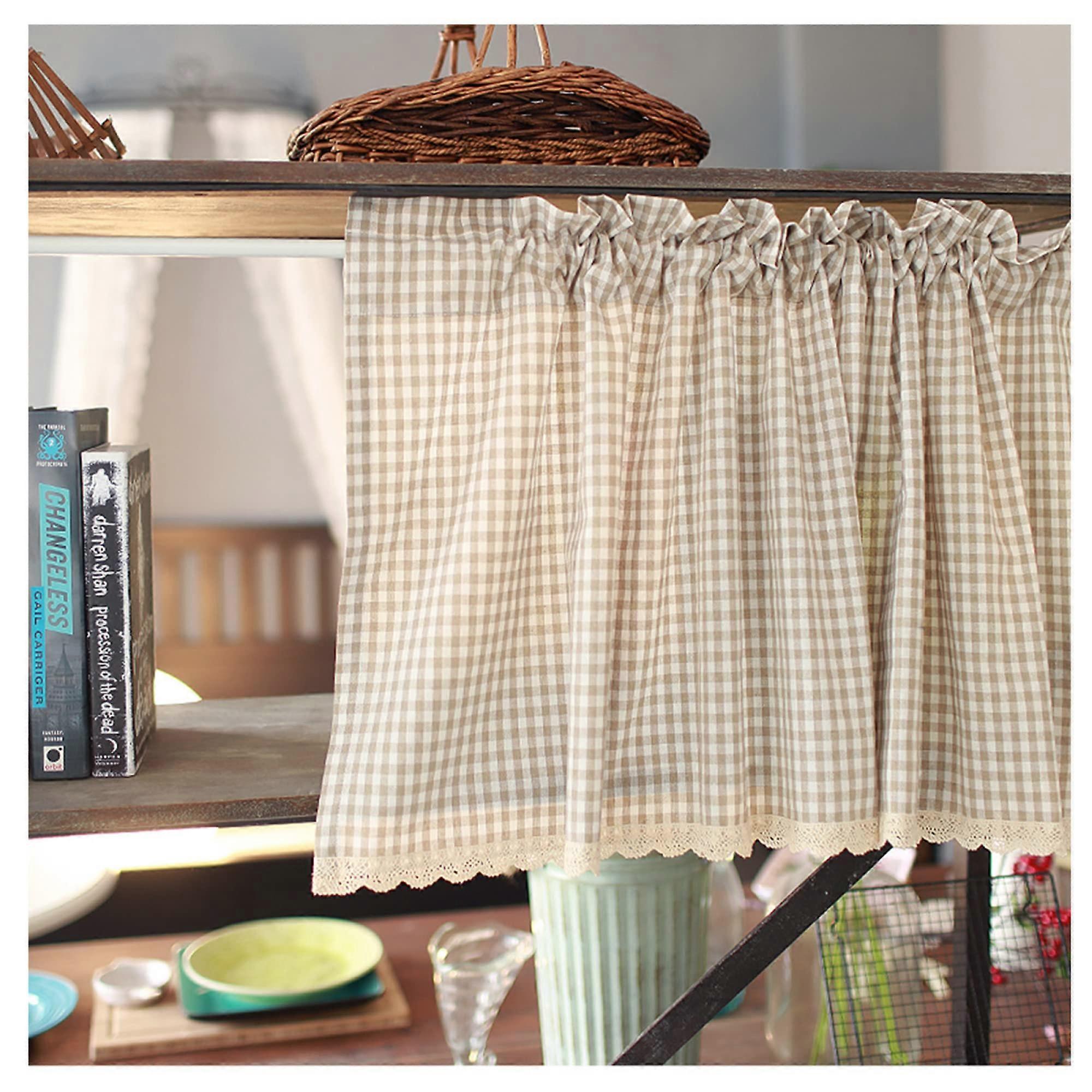 Cafe Kitchen Curtain Beige Country Style Valance Natural Cotton Linen Rod Pocket W130xH180cm