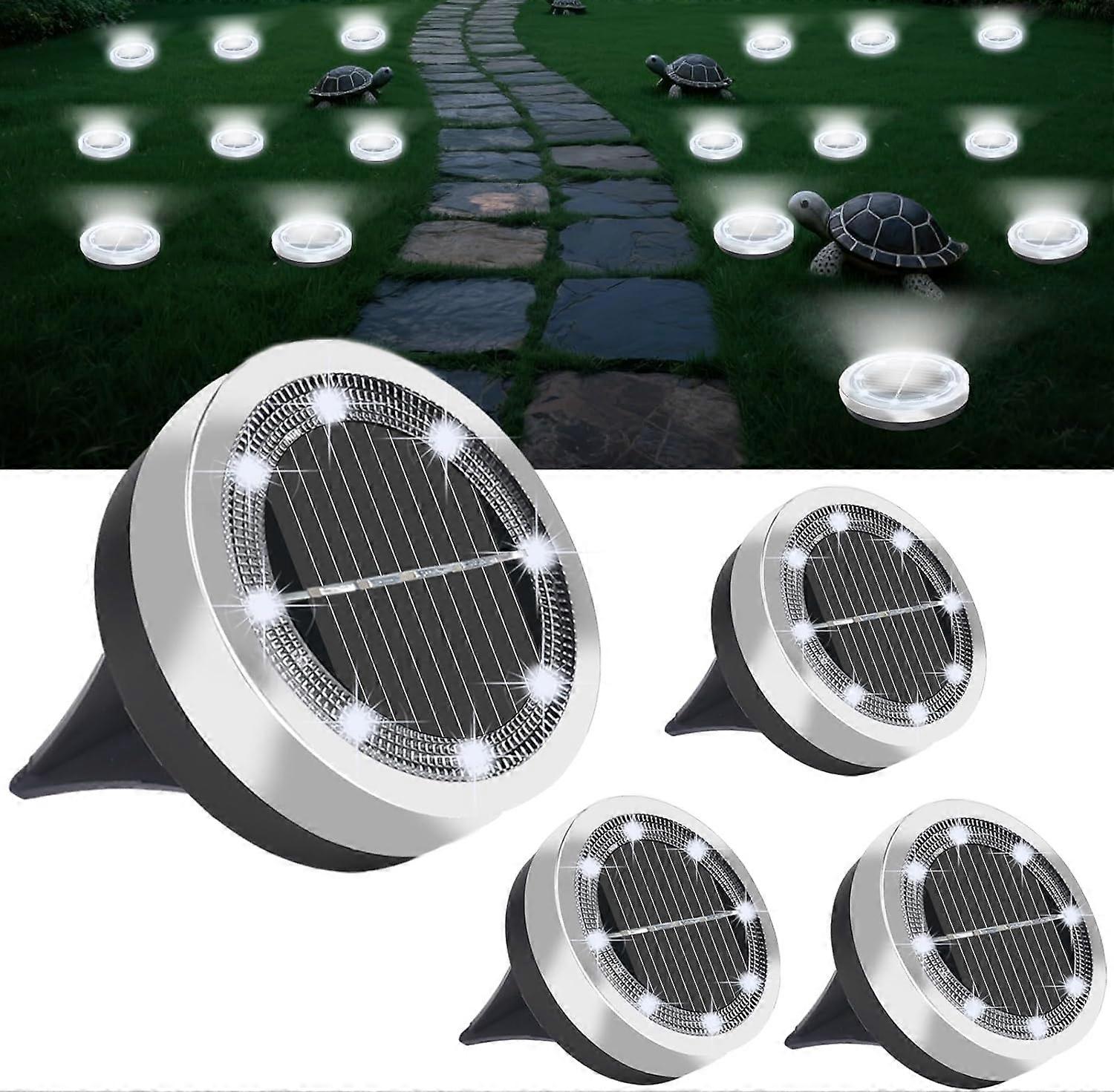4 Pack Solar Ground Lights Waterproof Mini Solar Lights Outdoor for Yard Led Solar Garden Lights Bright Stainless Steel Solar Powered Disc Light In-