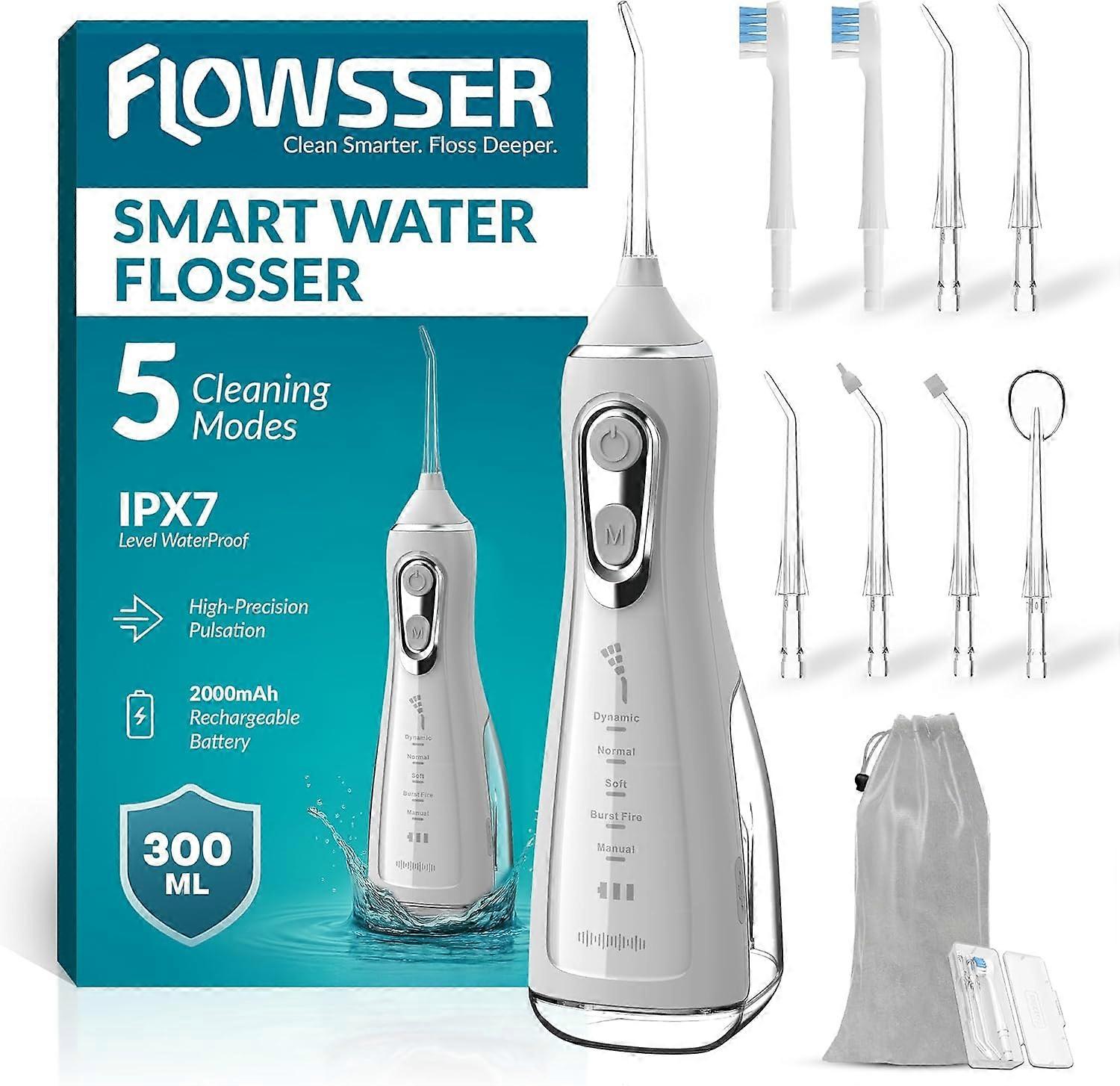 Rechargeable Water Flossers for Teeth Cordless with 5 Modes, 8 Tips, 300ml Tank, 60~140 Psi & Ipx7 Waterproof - Portable Water Flosser for Braces, G