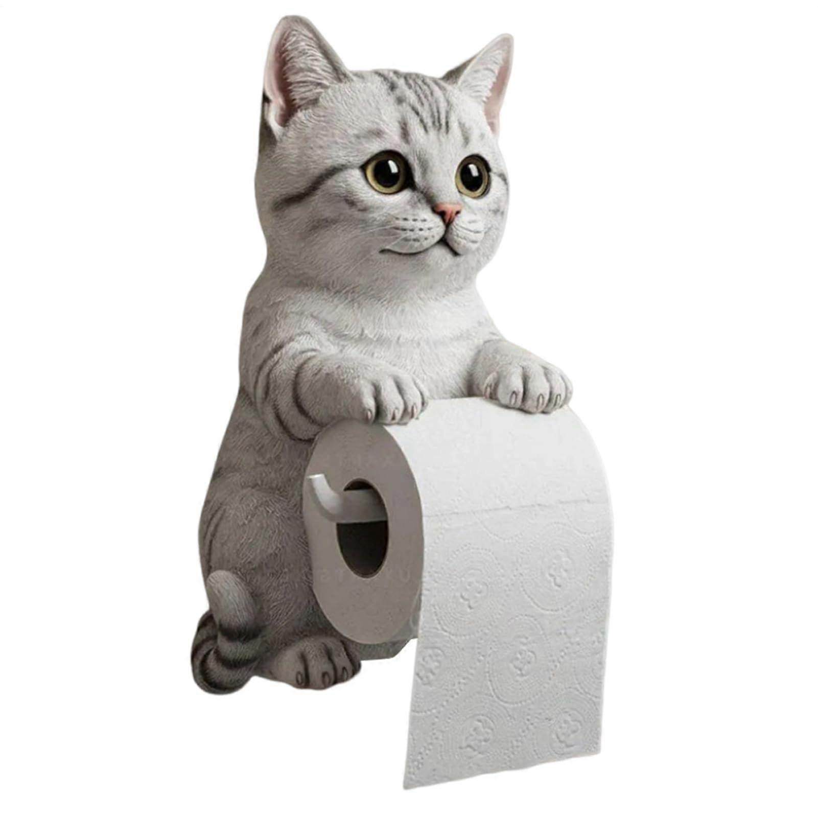 Cat Toilet Paper Holder Wall Mounted Resin Roll Dispenser with Funny Cat Design for Bathroom or Kitchen
