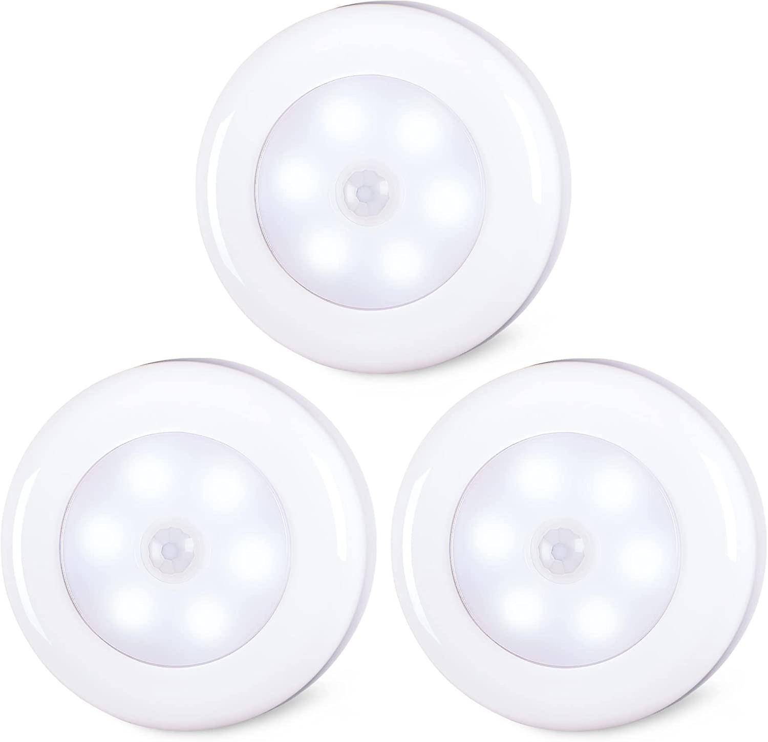 3 Pack 2.8” Motion Sensor Lights Indoor AAA Battery Operated, Stick on LED Puck Light for Stairs, Under Cabinet, Closet, Cool White White 2.8 inc