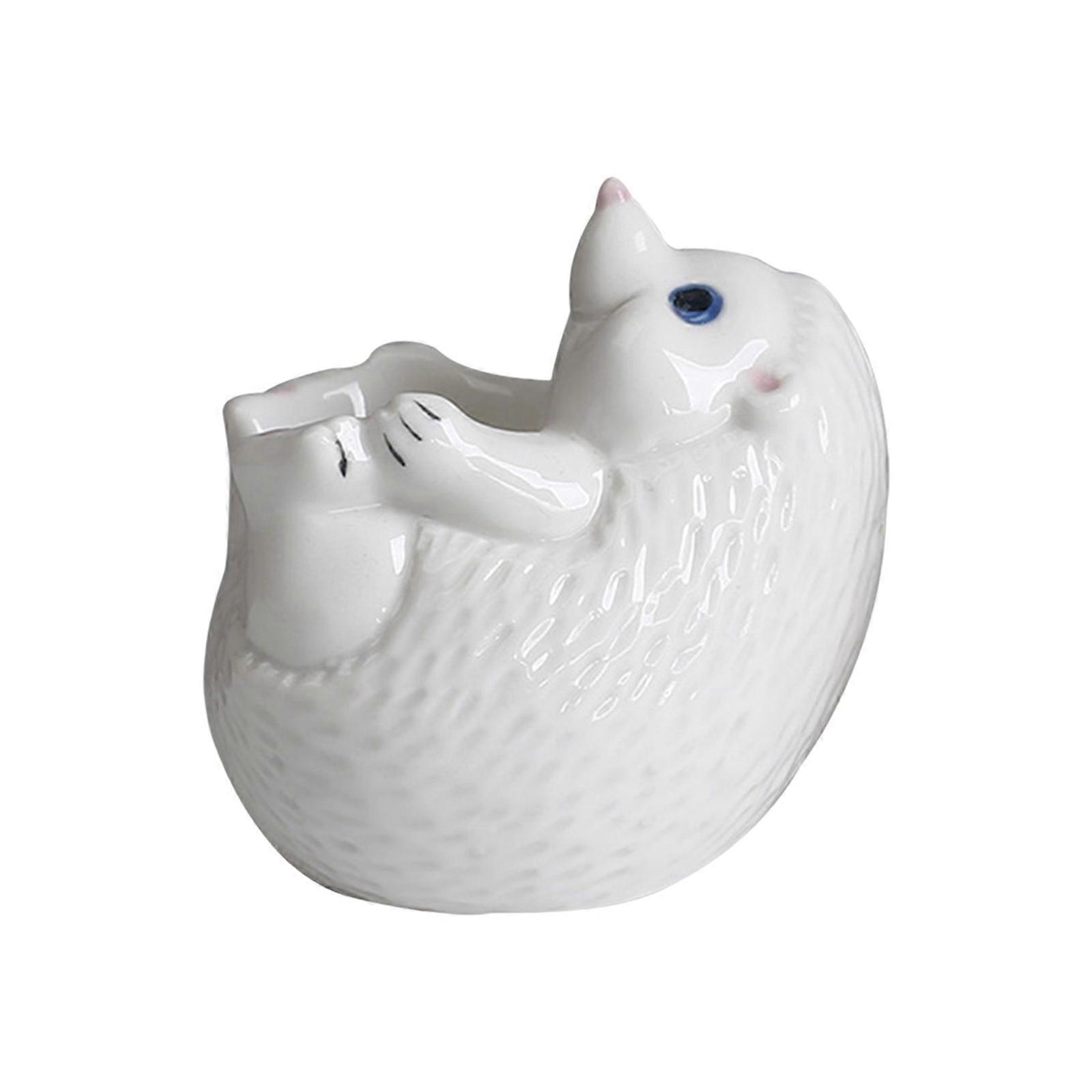 Animal Themed Ceramic Eggs Holder Funny Hedgehog Statue Succulents Pot For Kids Great For Breakfast Snacks Quick Cleans White