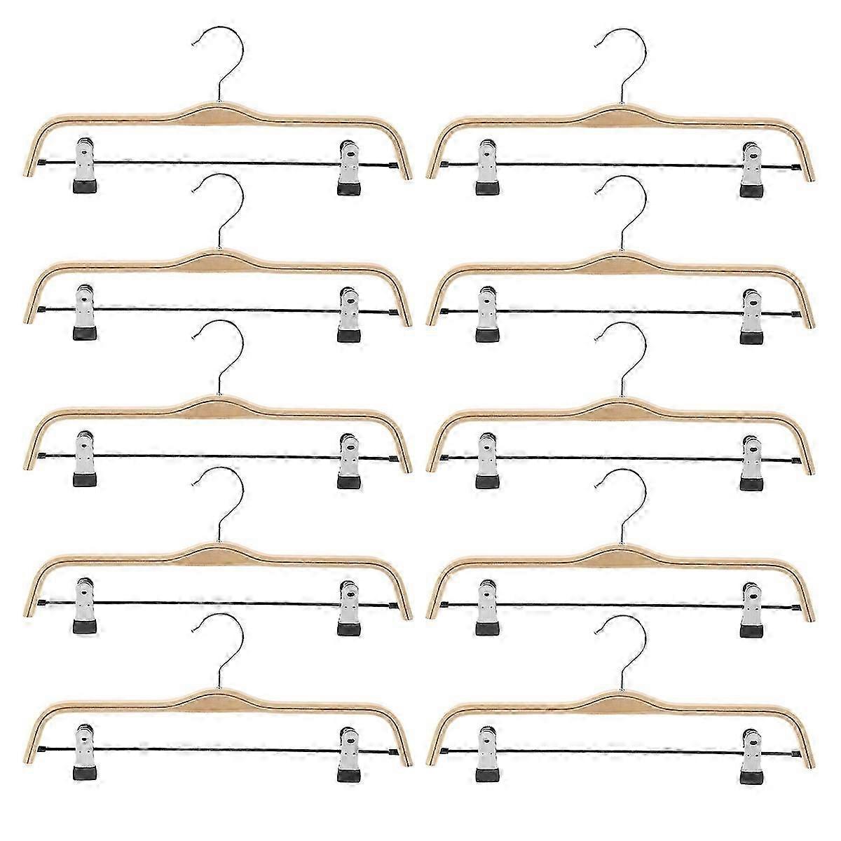 10 Pack Solid Wood Trousers & Skirt Hangers with Anti-Rust Clips for Clothes