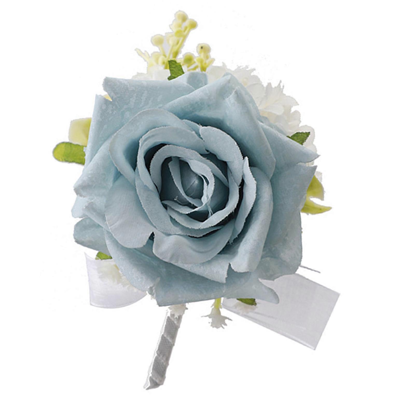 Wedding Silk Flower Boutonniere Durable Reusable Groomsmen Accessory For Ceremonies Blue