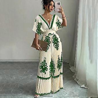 Summer New Fashion Women's High Waist Jumpsuits Casual V Neck Half Sleeve Splicing Printed Waist Cinching Straight Jumpsuit