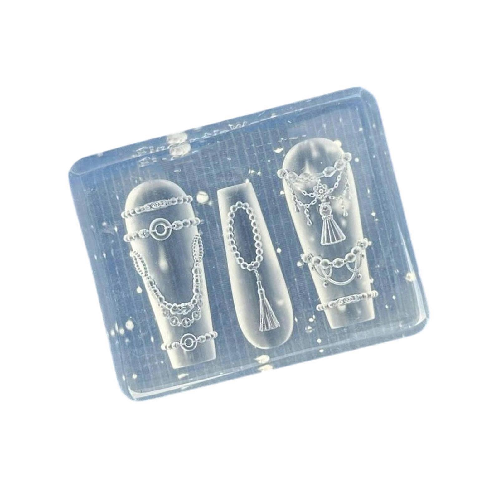 Features: Craft intricate Chinese knot chain nails art effortlessly with this reusable silicone mold, perfect for creating professional grade embossed designs on nails and accessories. Crafted with flexible, clear food grade silicone, this mold retains detail through repeated use while enabling easy release without tearing or deformation. Ideal for nails technicians, craft enthusiasts, and DIYers seeking to elevate their nails art designs or personalize jewelry, phone cases, and festive decorations. Create dimensional embellishments for themed manicures, resin jewelry projects, or decorative accents on greeting cards. Achieve salon quality results at home by pressing sculpting gel into the intricate pattern, curing under UV light, and customizing with glitters or colored polish for unique creations. Specifications: Component: Silicone Size: As Pictures Show Package Includes: 1x Relief Silicone Mold note: Please allow 1-2cm errors due to manual measurement. Due to the differences between different monitors, the picture may not reflect the actual color from the item.