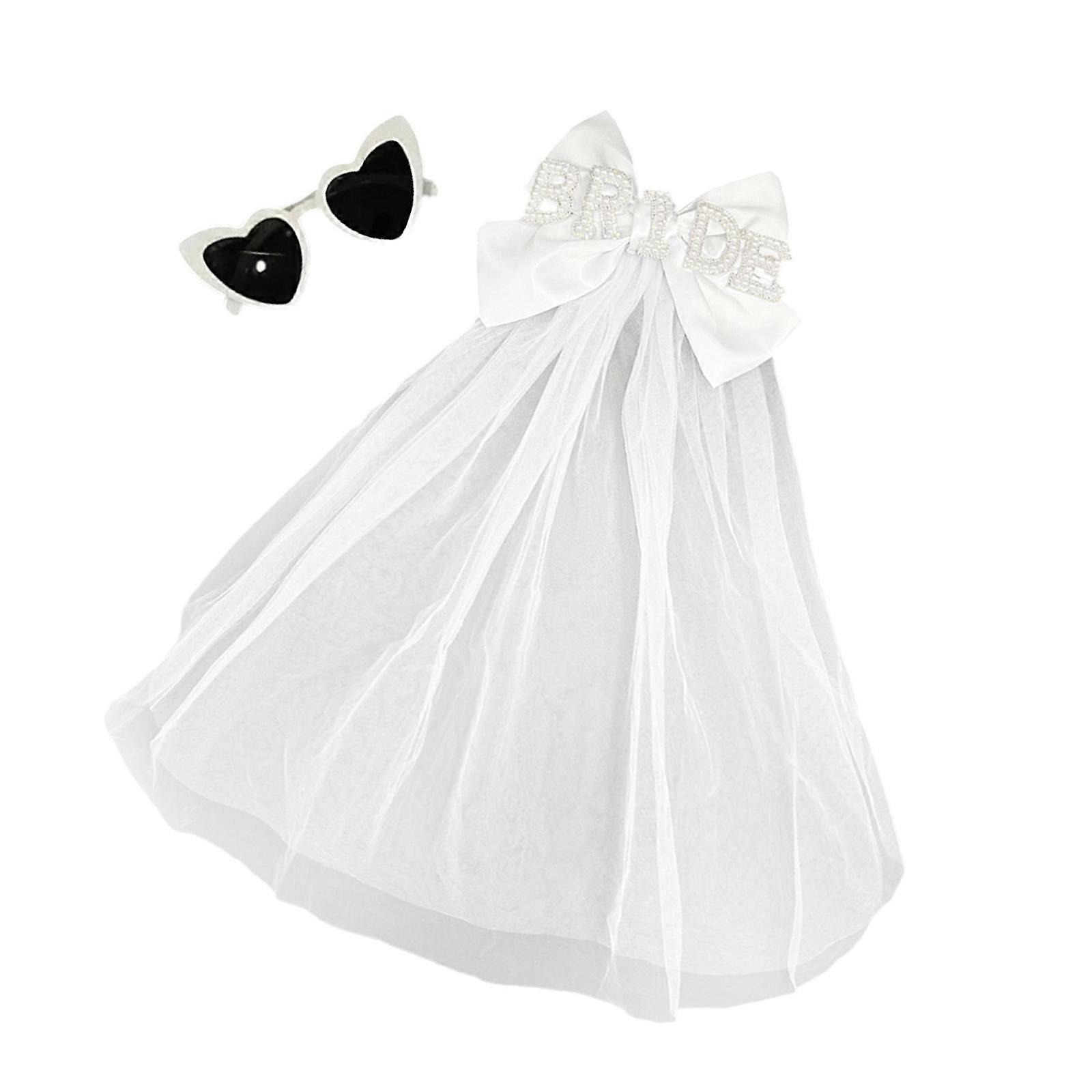 Bridal Veils Bowknot Sunglasses Set for Bachelorette Party Decorations Bride To Be Gift Bridal Shower Wedding Props Multicolor