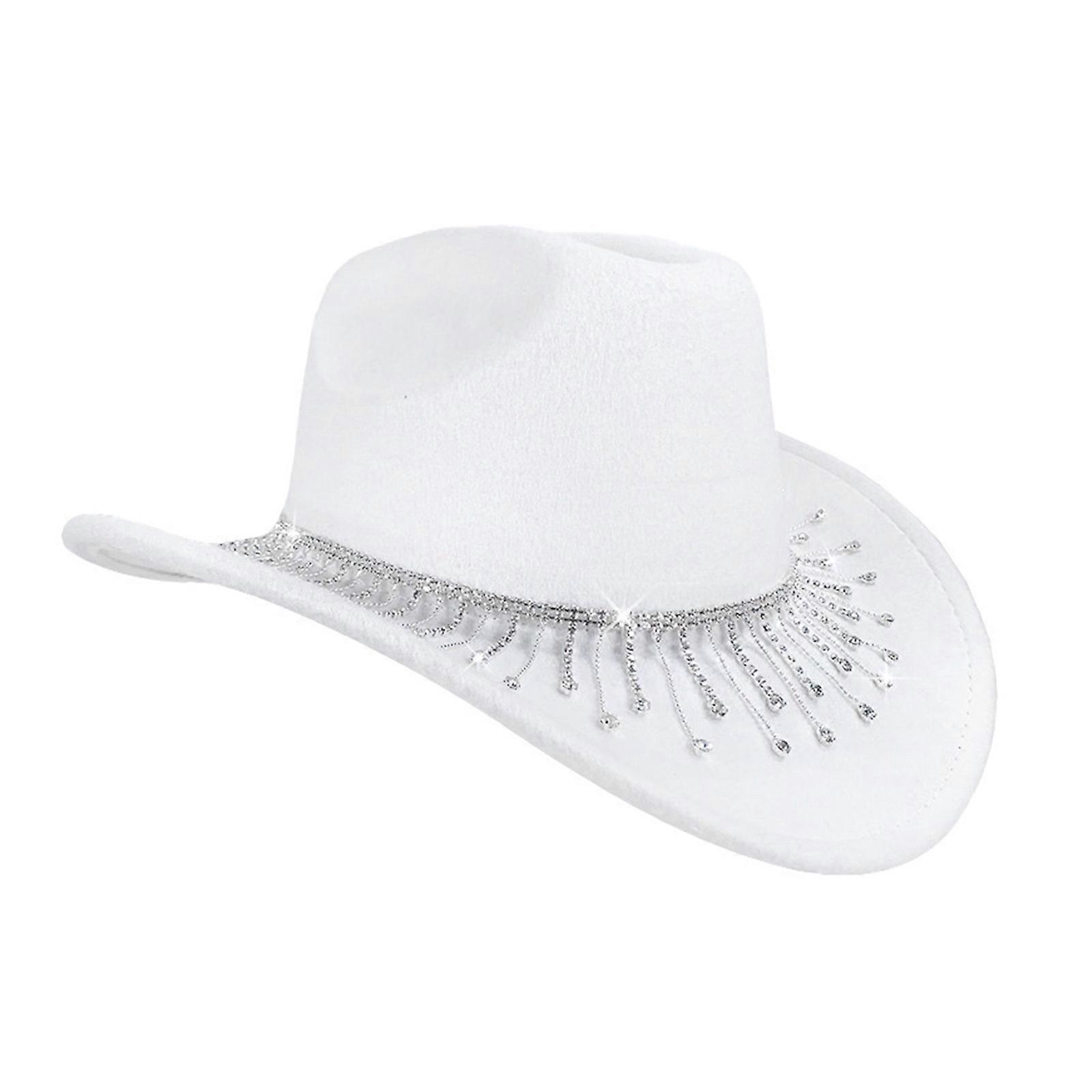 Tight Crystal Decorated Cowhand Bride Hat Soft Fleece Perceived For Photoshoots And Parties White