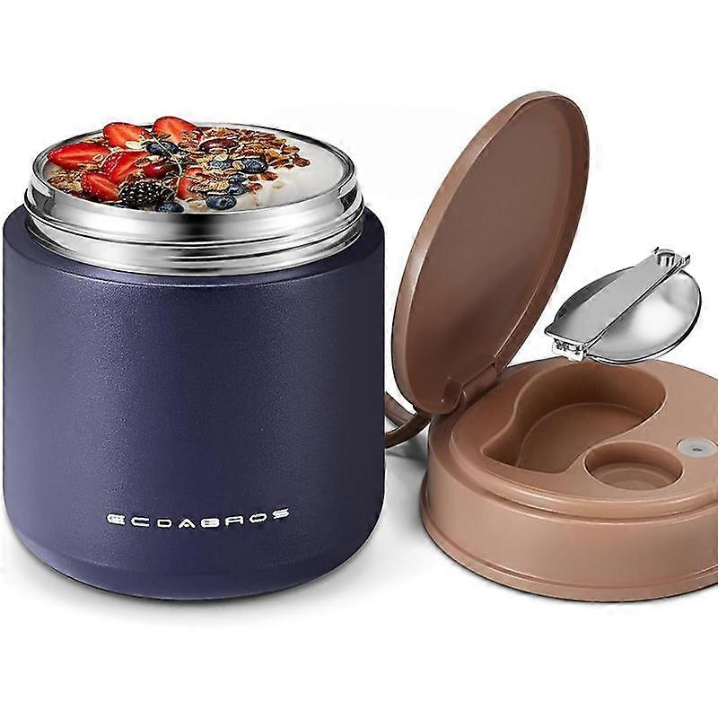 15.2oz Insulated Thermos Jar - Stainless Steel Hot & Cold Lunch Container with Handle and Spoon, Leakproof Wide Mouth Thermos(Navy)