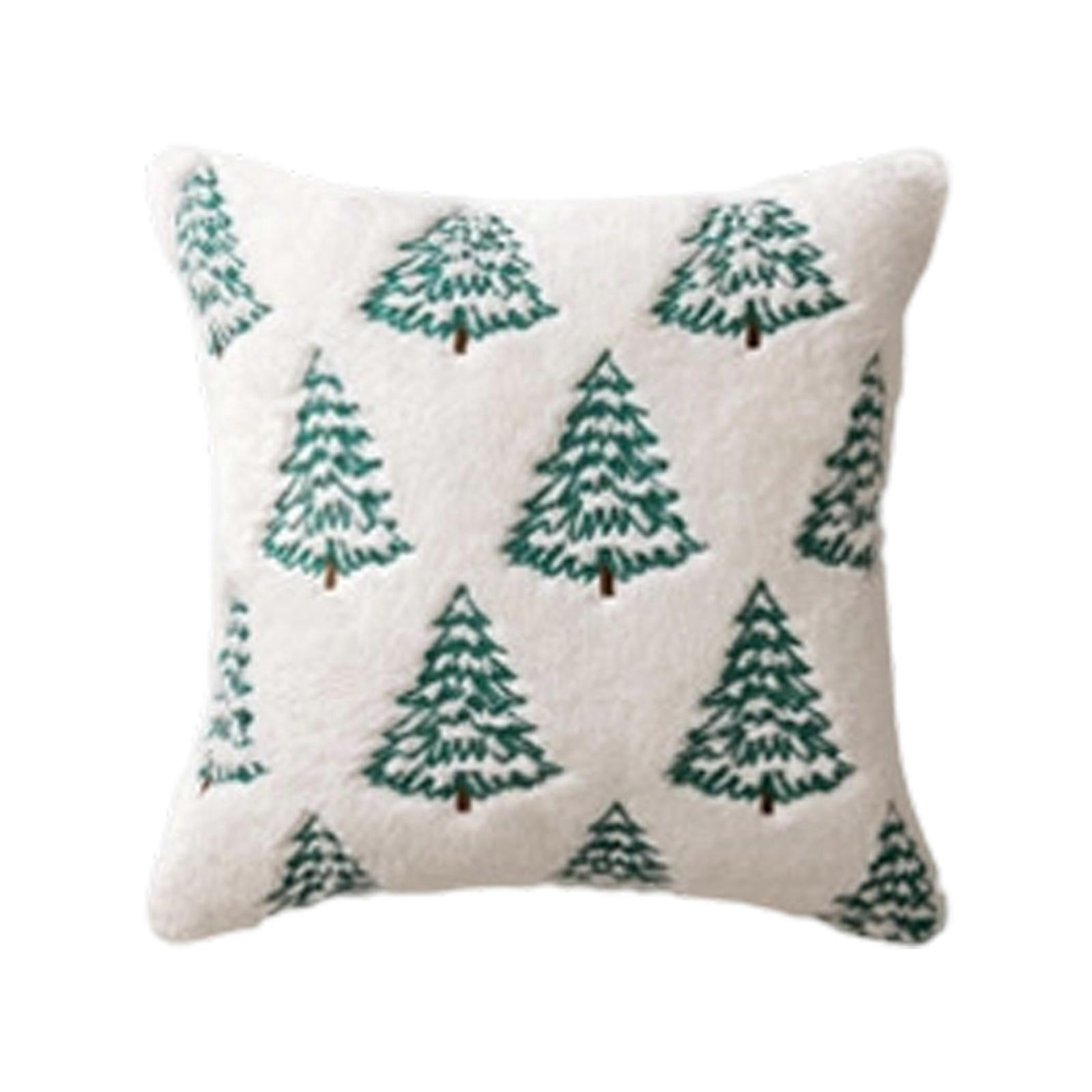 Christmas Tree Embroidery Decorative Pillow Case Faux Furs Cushion Cover Festives Home Decors Sofa Bedroom Accessories 45