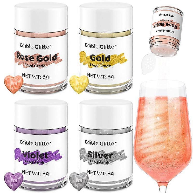 Food Edible Glow Powder,Vegan Colored Powders Set 4 For Drinks,Cocktails,Champagne,Cake Decorating,Chocolate,Cookie Frosting,Frosting Baking