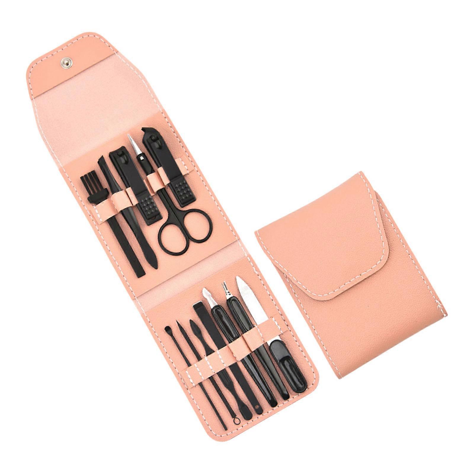 Nail Care Kit For Men and Women 12pcs Stainless Steel Manicure Pedicure with Travel Pouch Men's Grooming Tools Pink