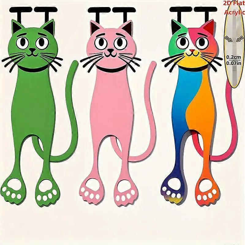 3pcs 2D Acrylic Cat Bookmarks - Durable Colorful Page Markers for Readers, Cat Lovers & Office/School Use