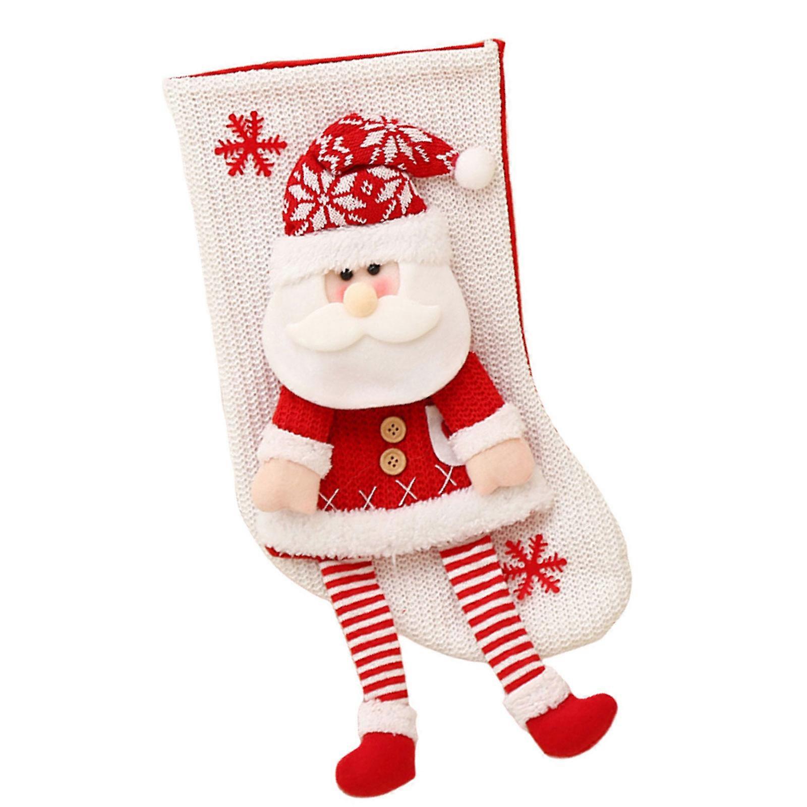 Christmas Gift Storage Sock 3D Knit Design With Reinforced Hanger Festive Surprise Holder Christmas Party Decoration White