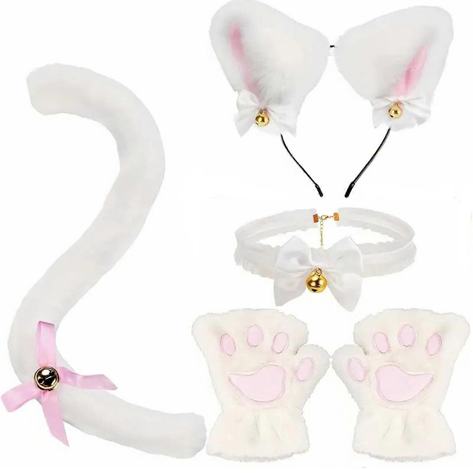 Cats Dress Up Accessories Includes Necklace Hair Hoop, Tail and Glove, for Kid Girl Cosplay Party White