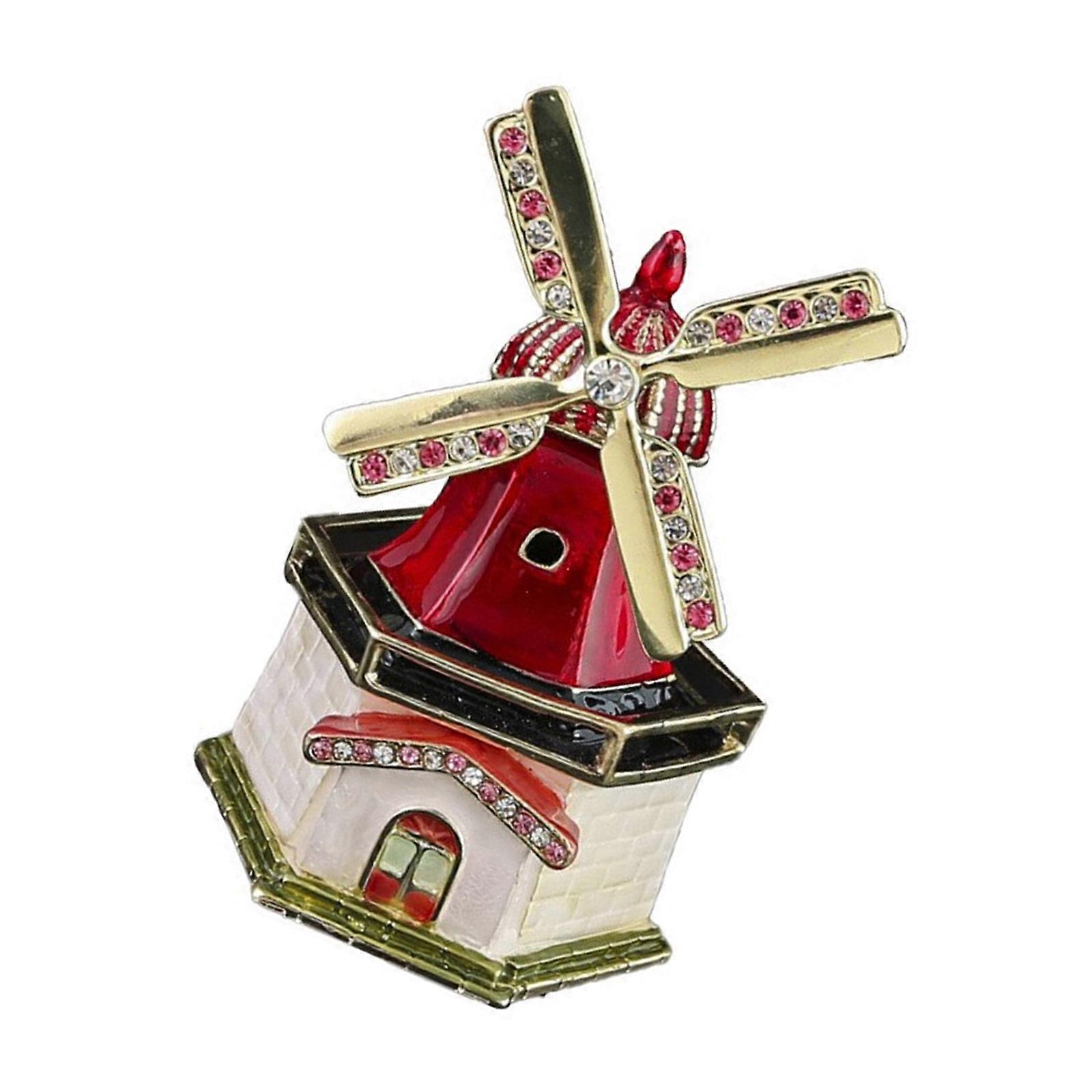 Decorative Windmill Pattern Jewelry Box Red Enamel Coating Alloy Materials for Long Time Use Jewelry Safekeeping Multicolor