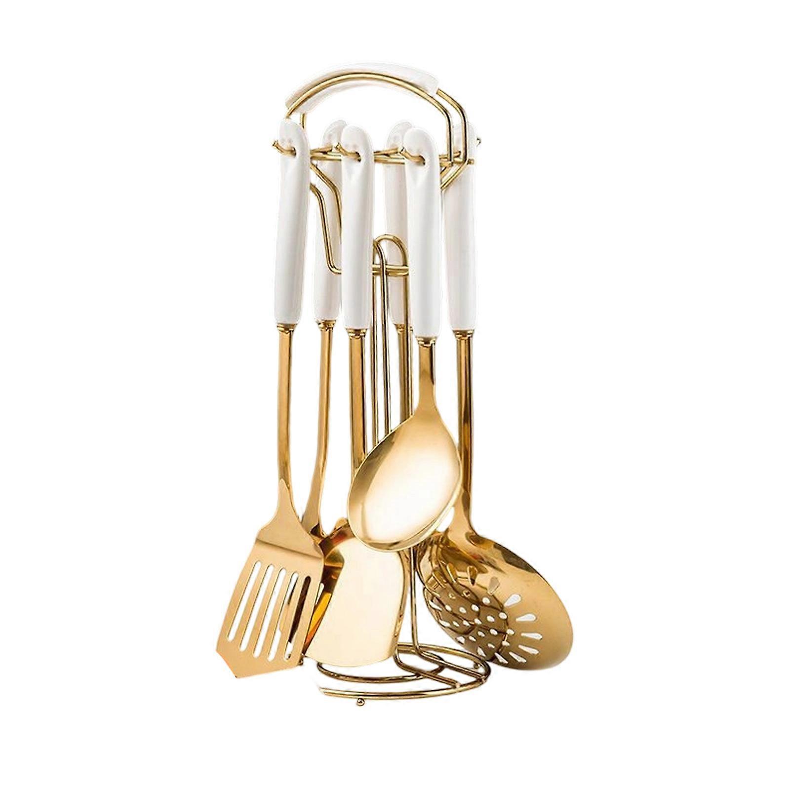 Features: Crafted from premium corrosions resistant stainless steel, this 7 piece kitchen utensil set offer excellent durability and effortless cleaning, making it the perfect upgrade for home chefs seeking long lasting cookware essential. Features smooth nonporous surfaces that resist food buildup paired with heat resistant ceramic handles for secure grips, while the comprehensive assortment covers all basic cooking tasks from flipping to mixing. Ideal for family cooks, busy professional, and culinary enthusiasts who value kitchen efficiency without compromising on tool quality or aesthetic appeal. Designed for daily meal preps, baking projects, and high heats cooking applications in both household and professional kitchen environments. Combines modern sophistication with practical functionality – its gleaming stainless steel construction and coordinated ceramic accents elevates any kitchen space while ensuring efficient performances. Specifications: Materials: Stainless Steel Size:As Shown In The Picture Color:White Gold/Pink Gold/Black Gold/Green Gold Package Includes: 7Pcs Stainless Steel Kitchenware Set note: 1.Please allow 1-2cm errors due to manual measurement, make sure that you donot mind before you order. 2.Due to the differences between different monitors, the picture may not reflect the actual color about the item.