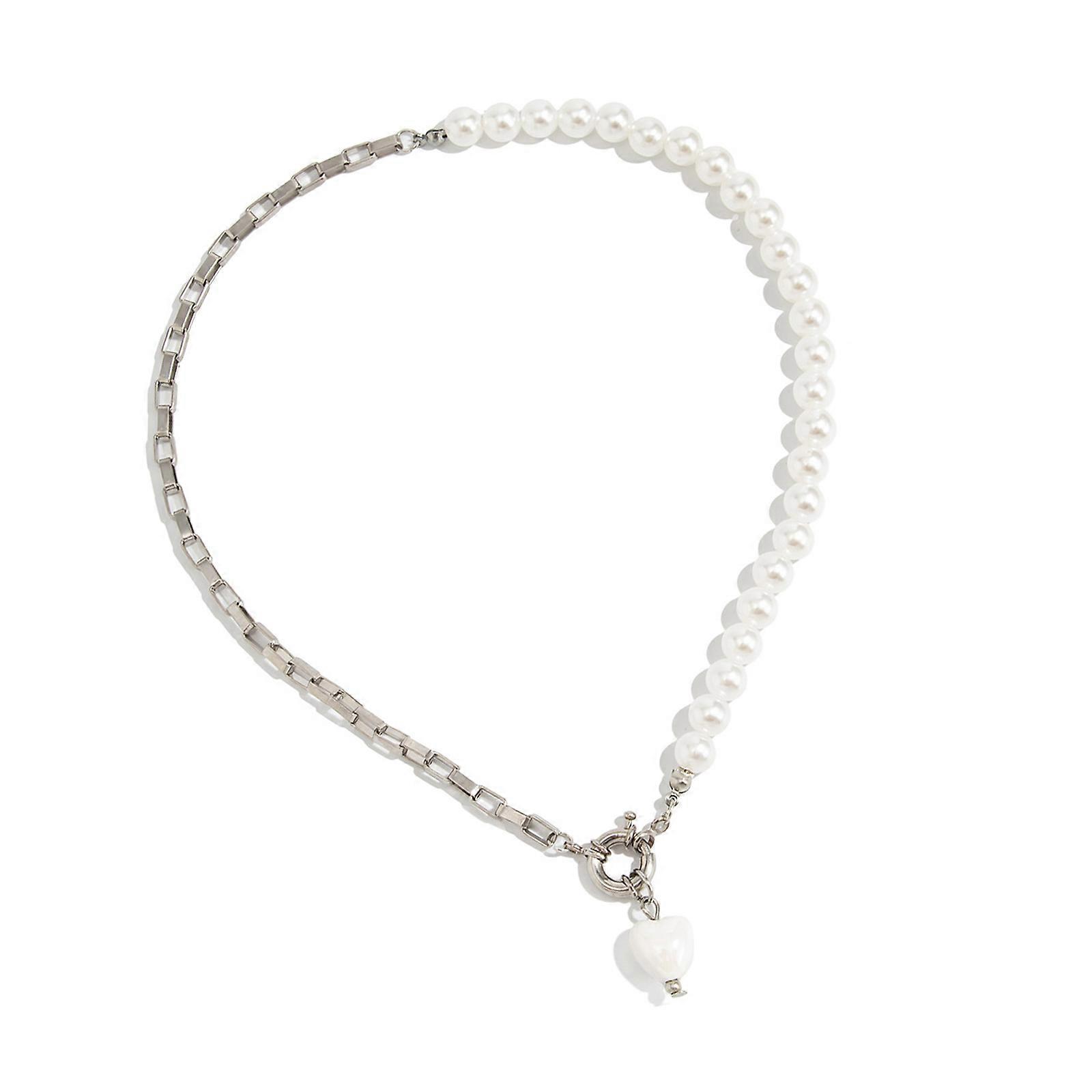 Elegant Asymmetric Crosses Pendant Necklace Ceramic Alloy And Pearls Blend Stylish Everyday Clavicle Chain Accessory white king
