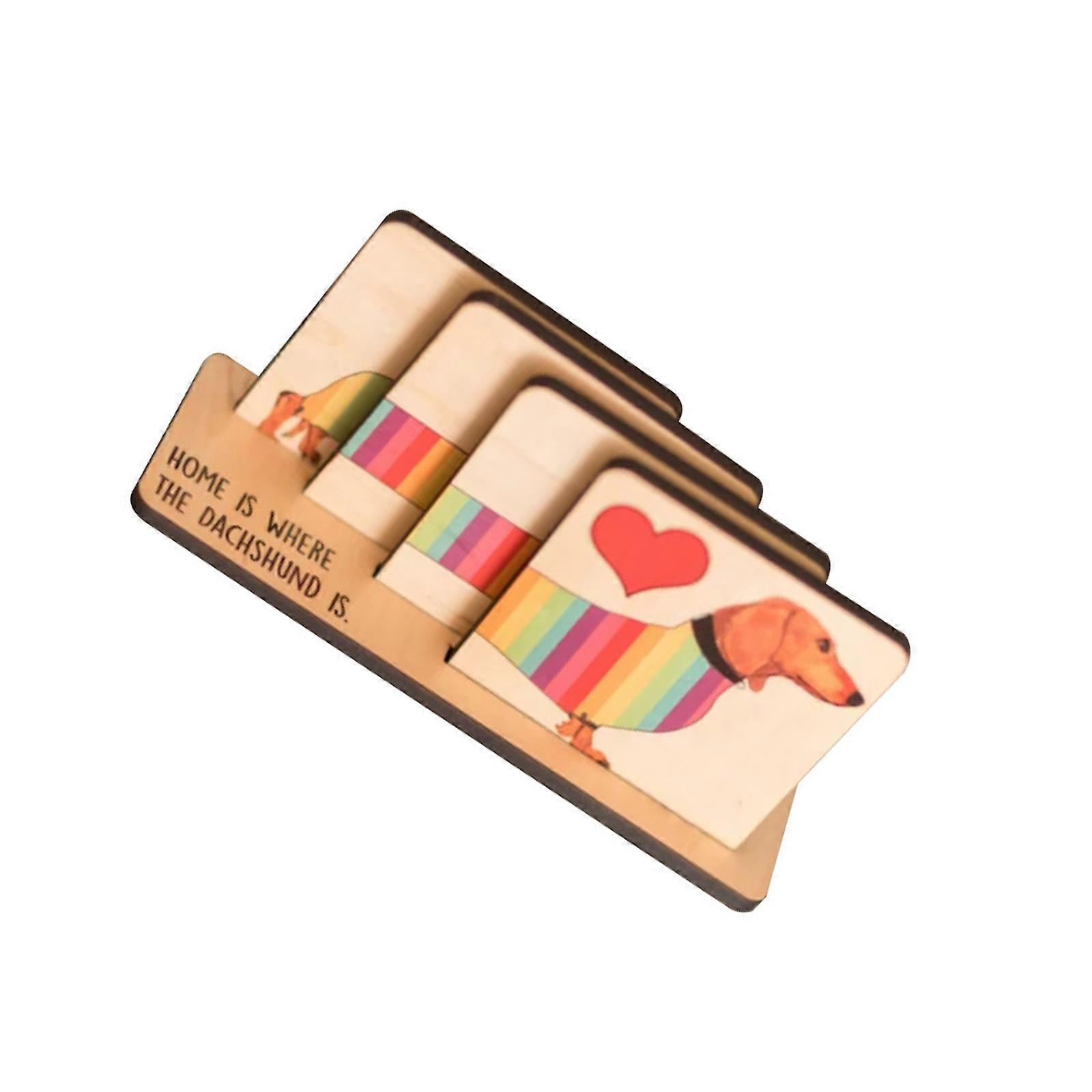 Creative Wooden Dachshund Coaster Rainbow Designs Home Decoration Kitchen Accessory Multipurpose Cup Mat Multicolor