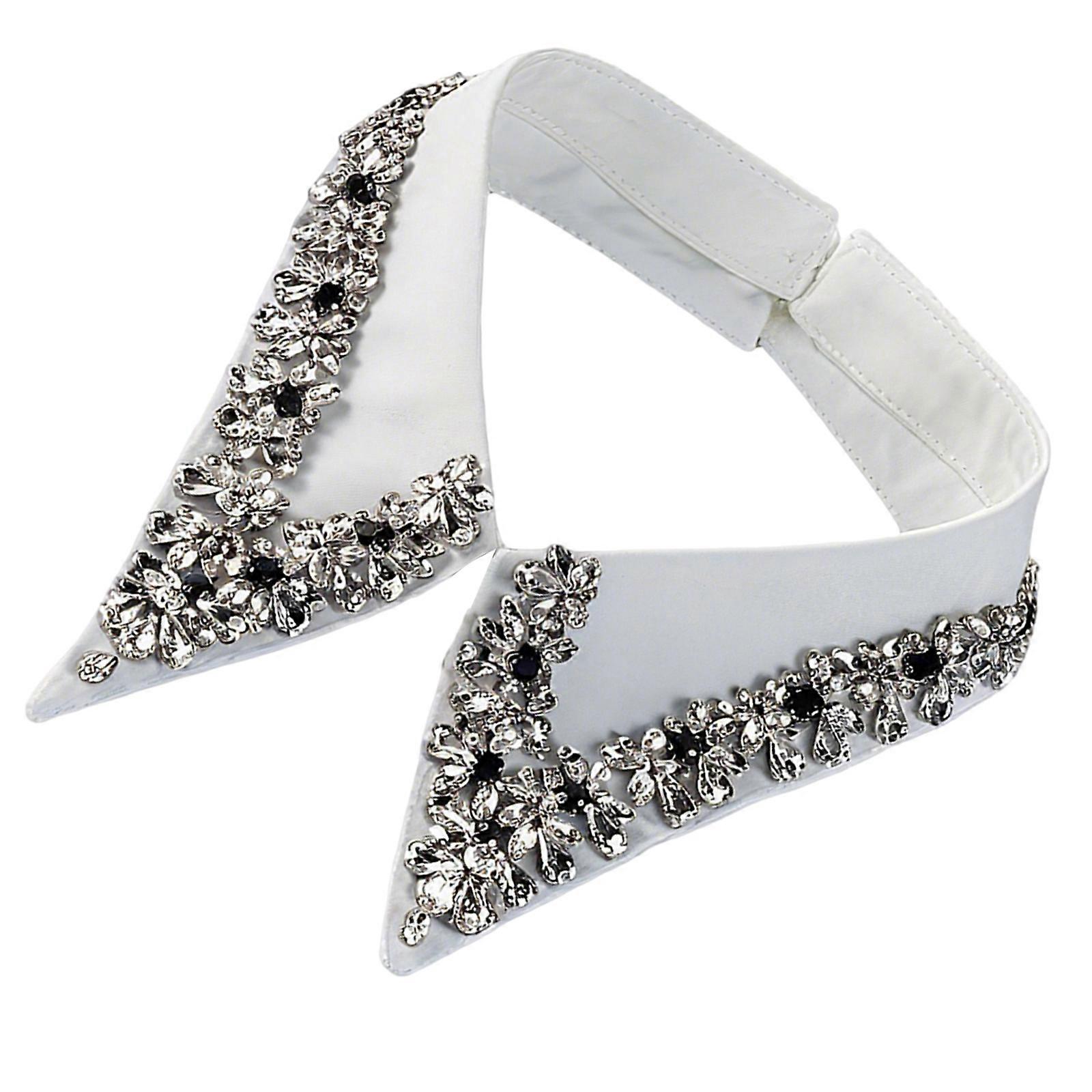 Fashionable Interchangeable Collar Cover Glittering Crystals Breathable false Collar Accessory Multiple Outfit Option White