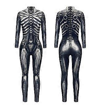 Women 3D Skeleton Long Sleeve Skinny Bodysuit Jumpsuit Halloween Cosplay Costume