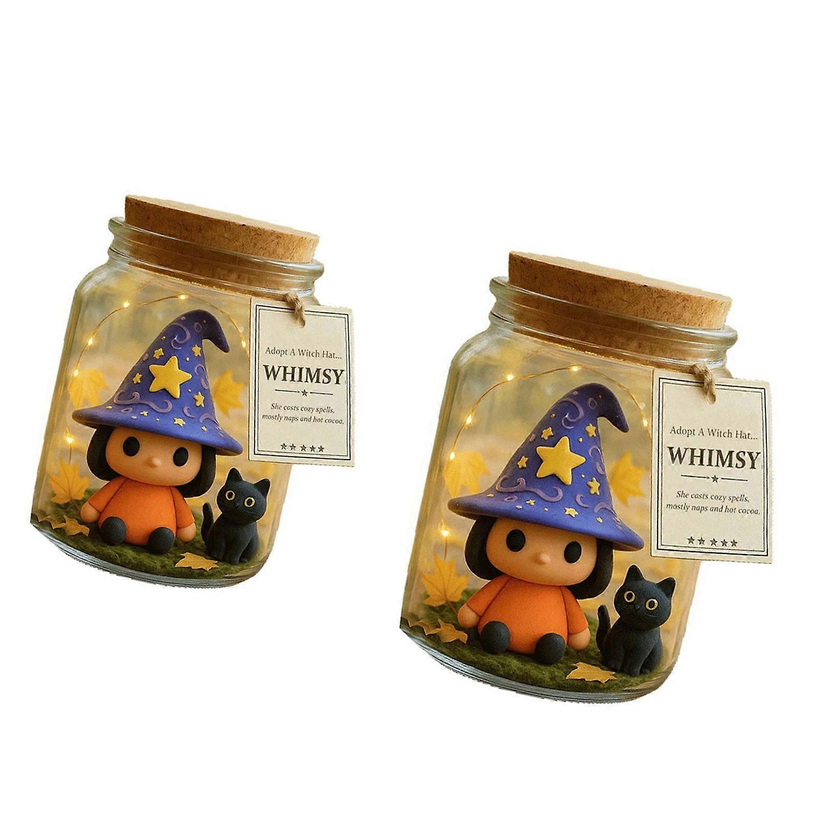 Whimsy Cats And Witch Miniature Halloween Resins Figurines Glass Jar with Cork Lid LED Lighted Creative Desktop Decors Size
