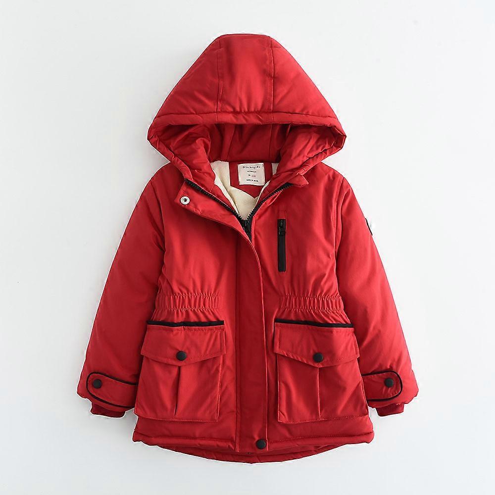 Windproof and rainproof plus velvet thickened waist hooded girls cotton coat 2025 winter
