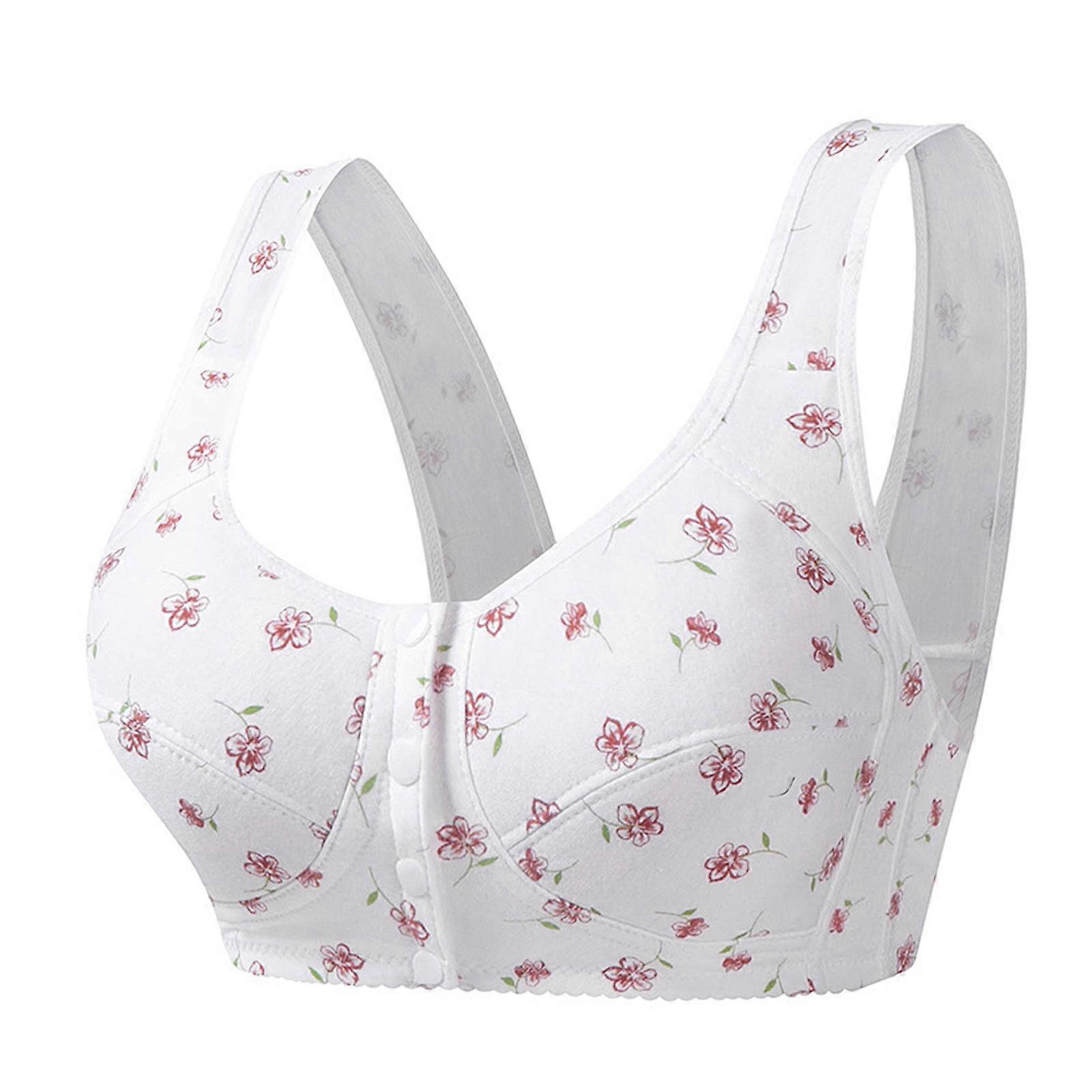 Front Closure Bras for Seniors,Front Snap Closure Bras,Wireless Full Coverage Bras for Older Women Front Buckles Brassie Burgundy XL