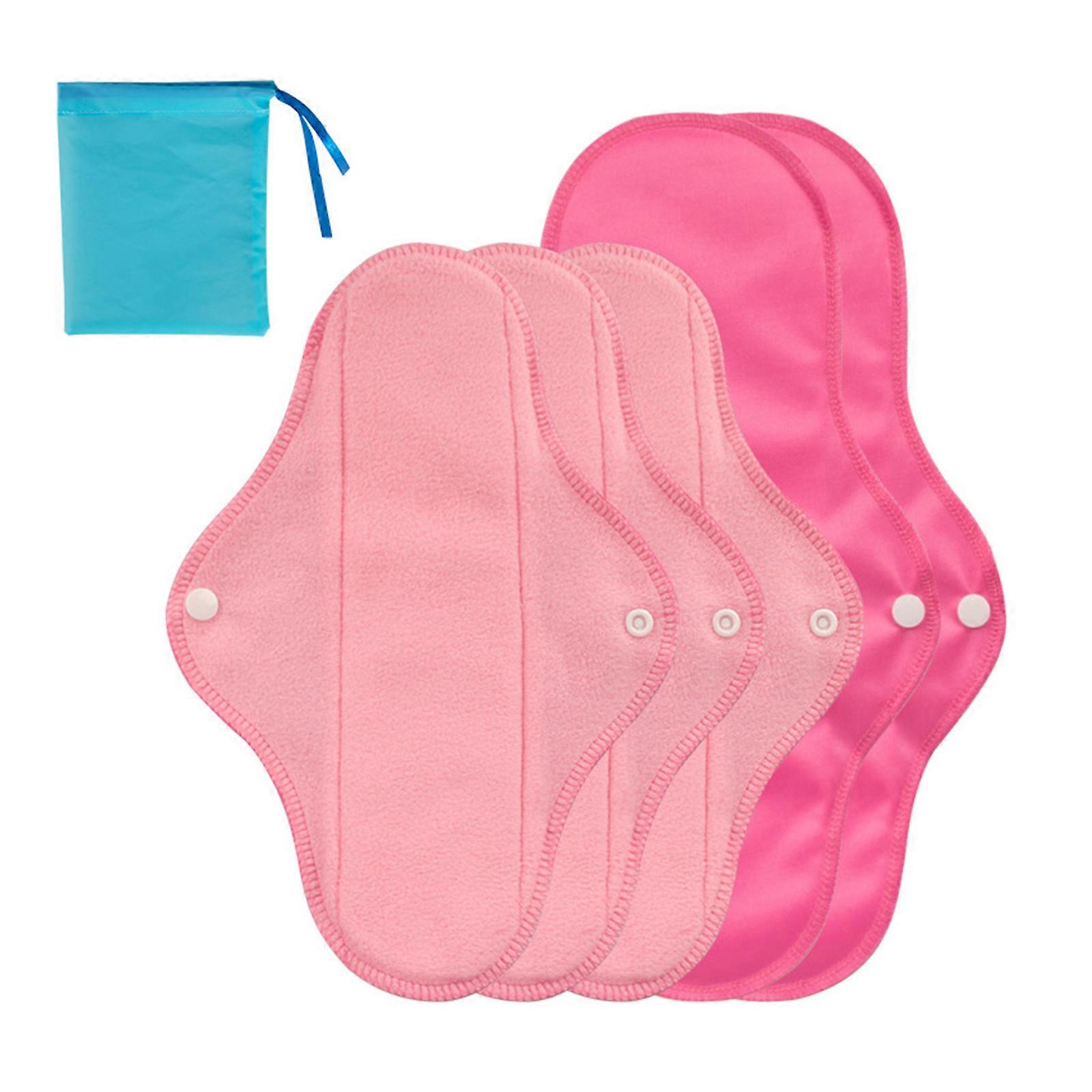 5 Piece Women's Soft Cotton Sanitary Pad With Antibacteria Technology Reusable Washable Menstrual Napkin Underwear Liner Pink