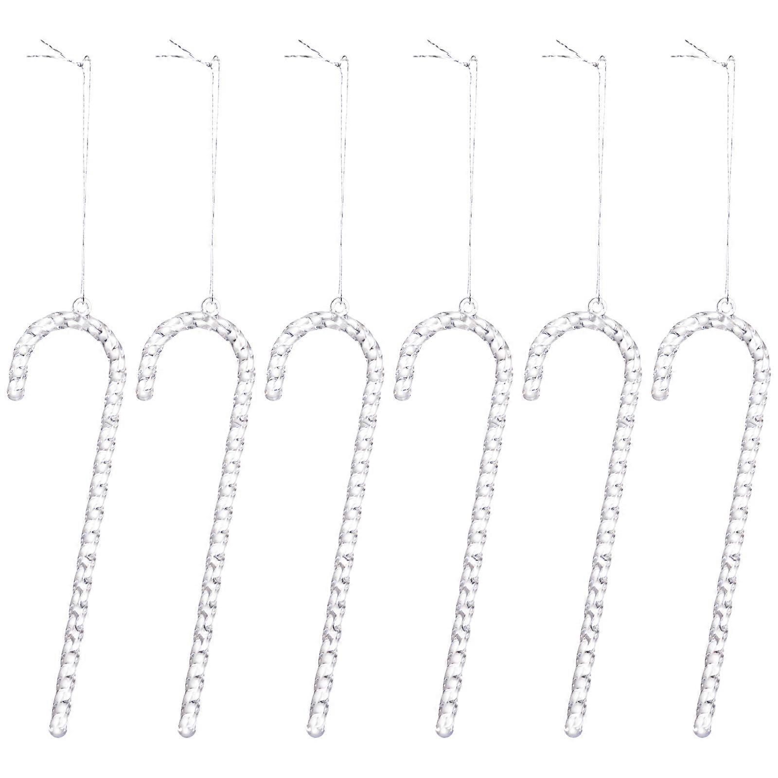 6 Watches Unambiguous Candy Staff Shaped Garnishes Premium Acrylic Christmas Hanging Trim For Family Party Decoration Clear