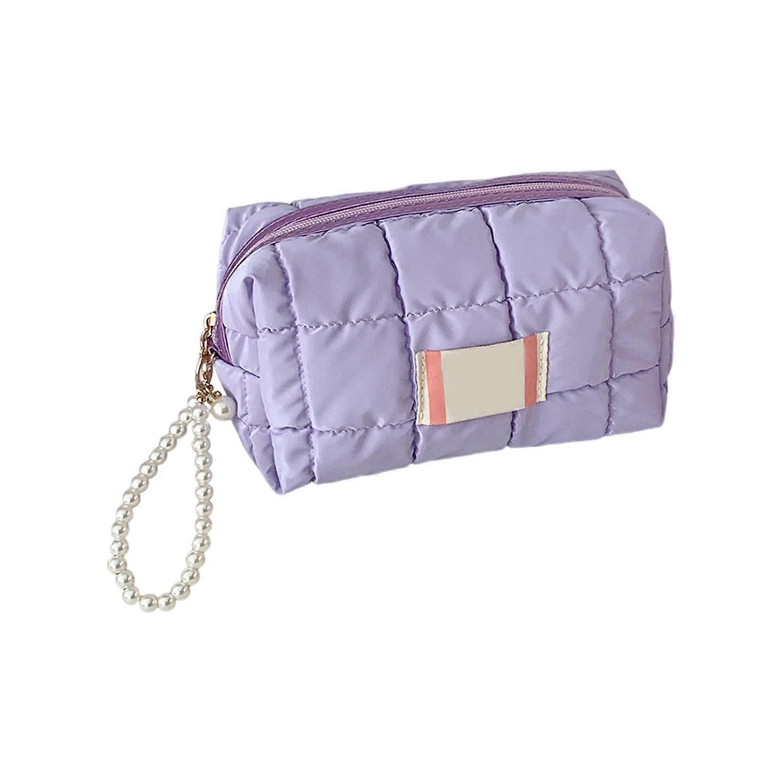 Quilted Pen Box Pencil Case For Kids and Student Desktop Organizers Pencil Pouches School Office Stationeries Supply Bag Purple