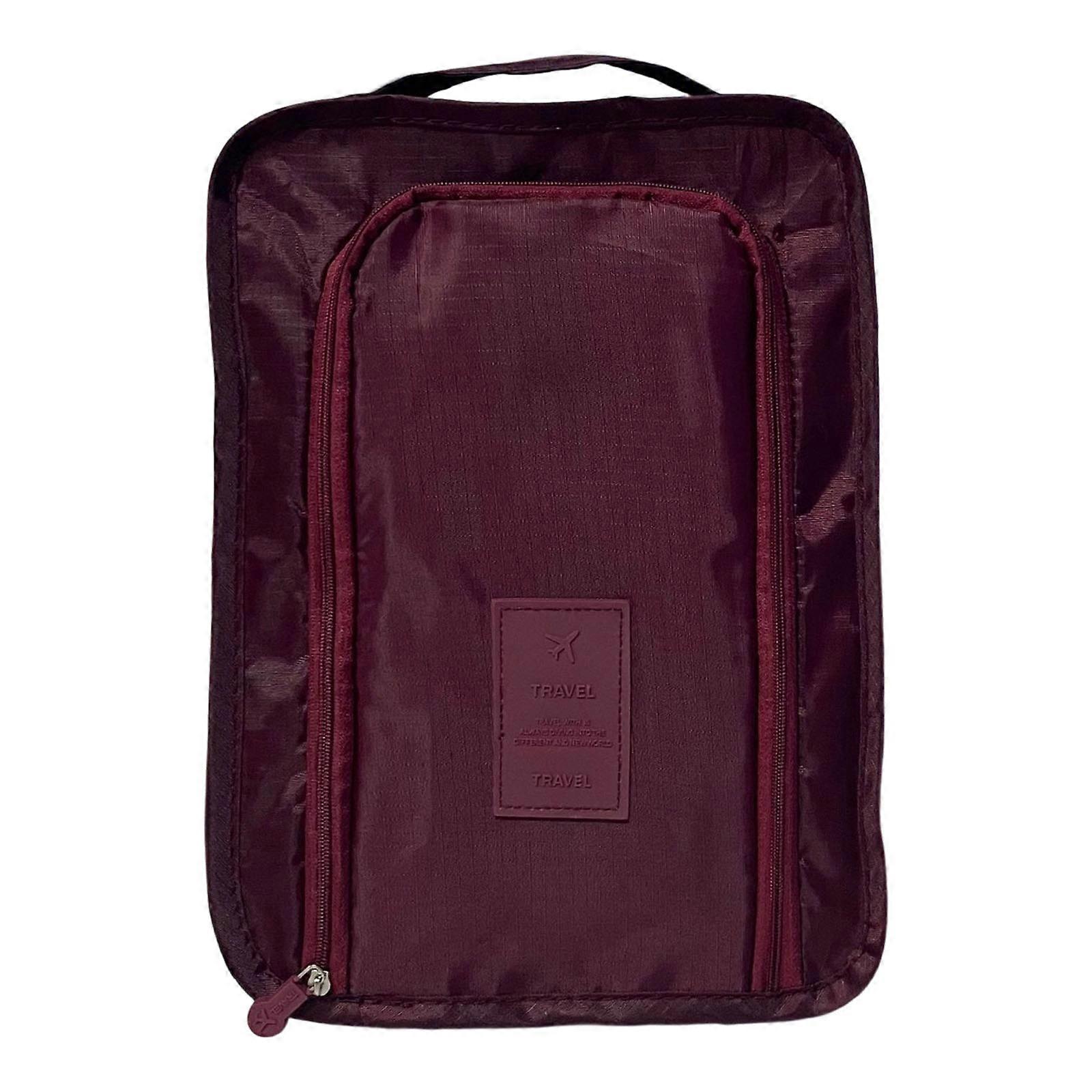 Portable Waterproof Foldable Shoe Bag For Travel Lightweight Polyester Fabric Storage Pouch With Mesh Pocket Burgundy
