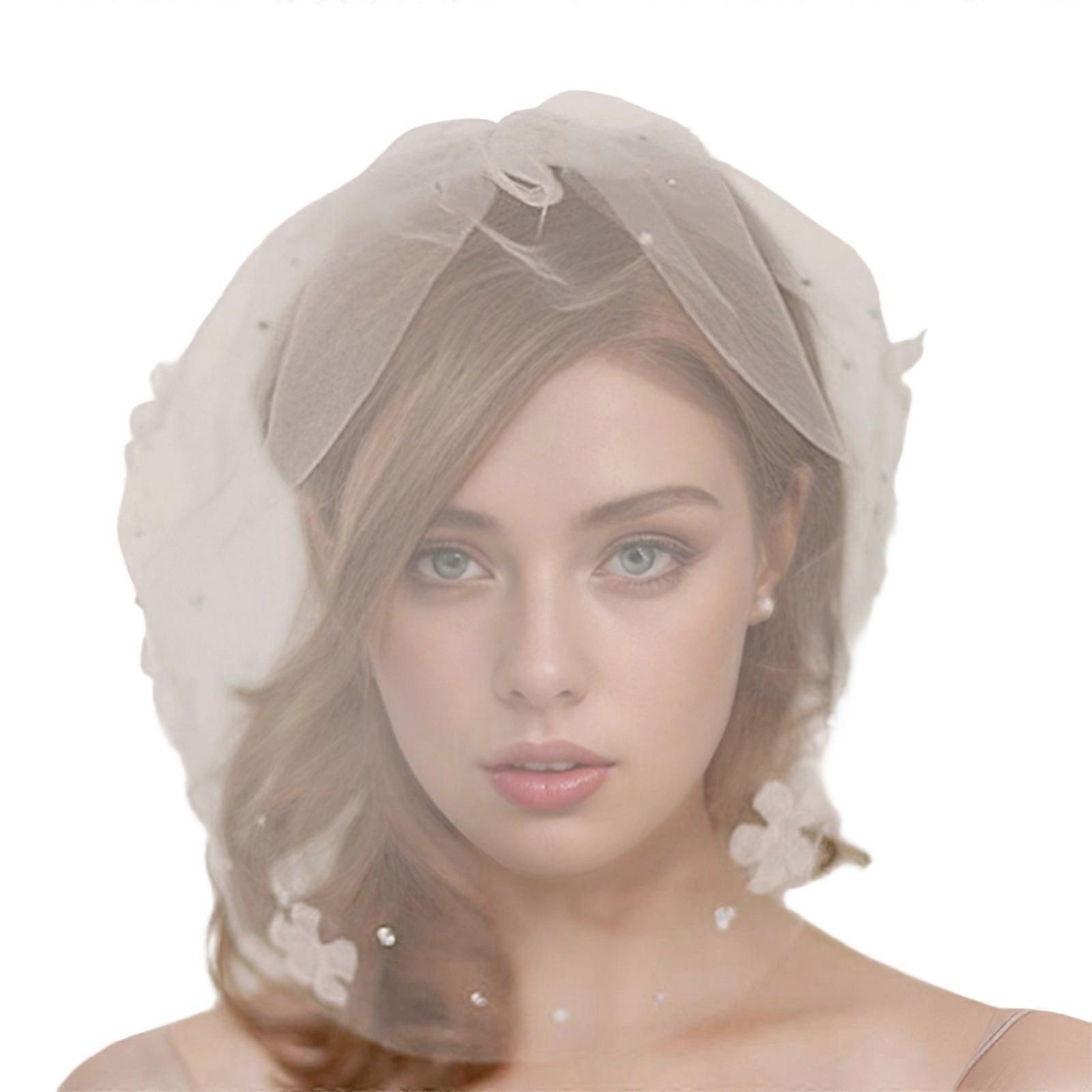 Elegant Fascinator Rhinestones Pearls Bridal Hair Accessory For Women Wedding Party Photo Props Cream