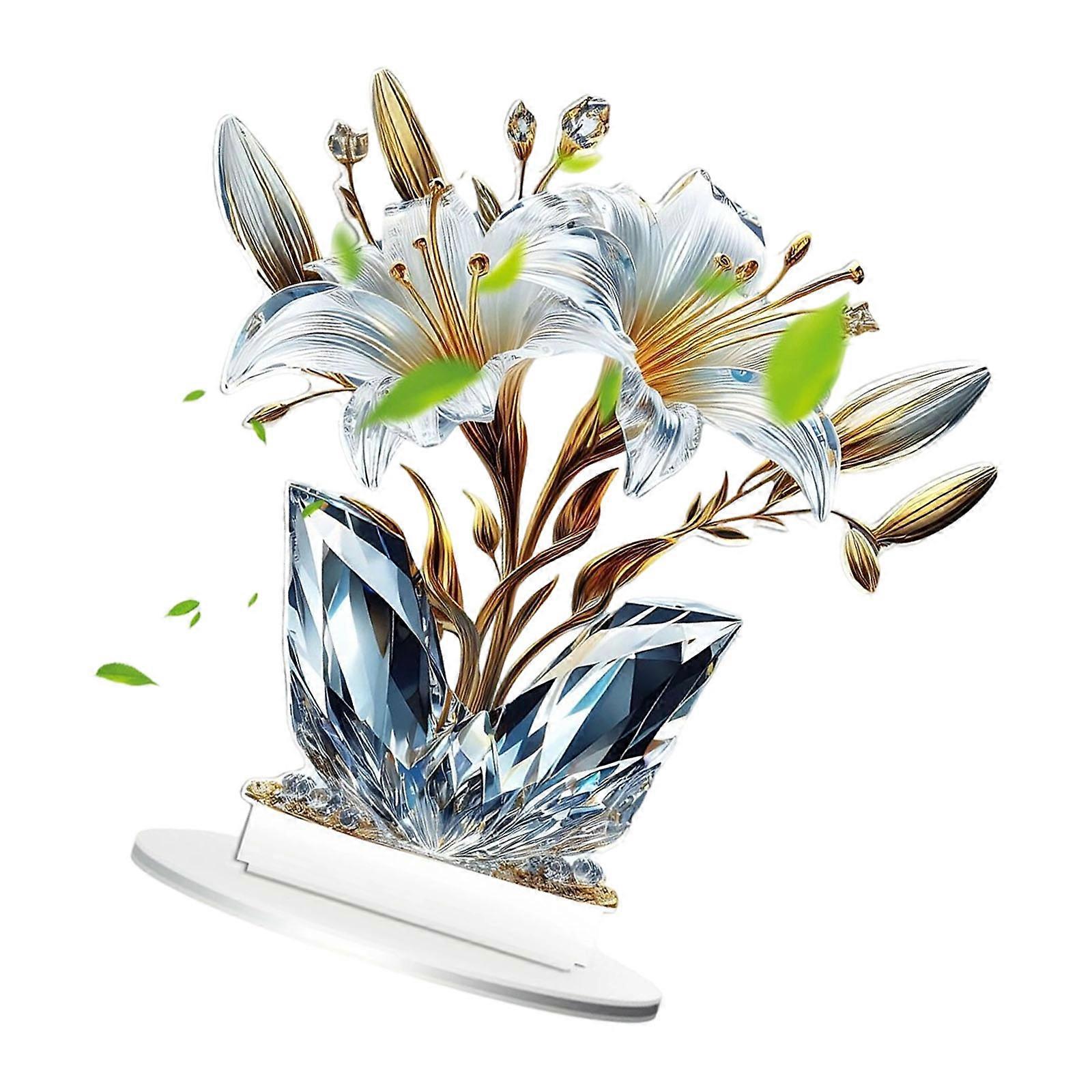 Acrylic Flowers Statue Figurine Rose Sculpture Home Office Decors Tabletop Centerpieces Collectible Decorative Figurine Multicolor