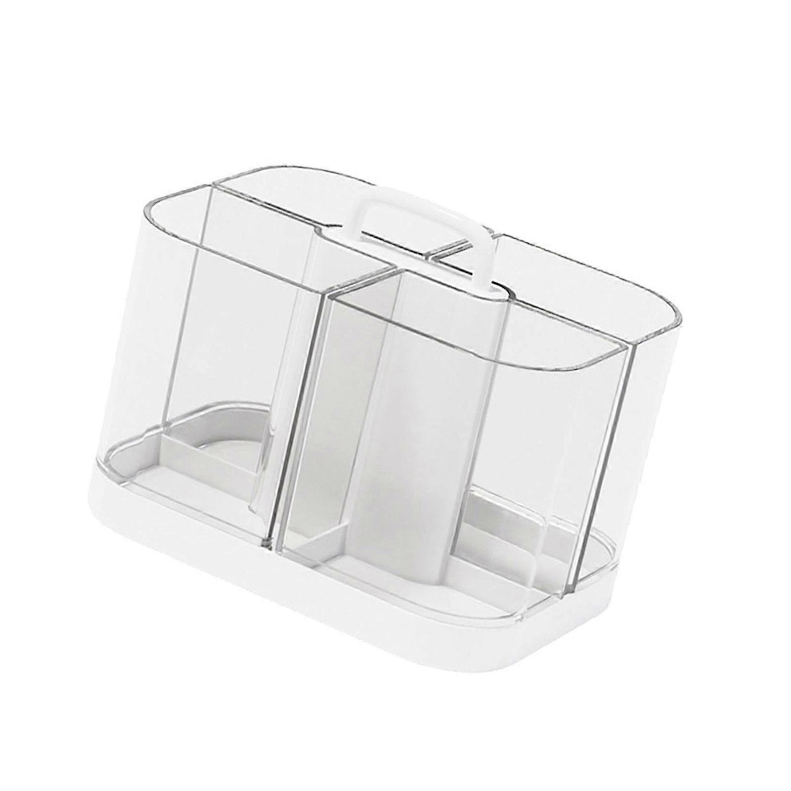 Desk Pen Organiser 4 Compartments Pencil Cup Multifunctional Marker Storage Box Makeup Supplies Container for Office White