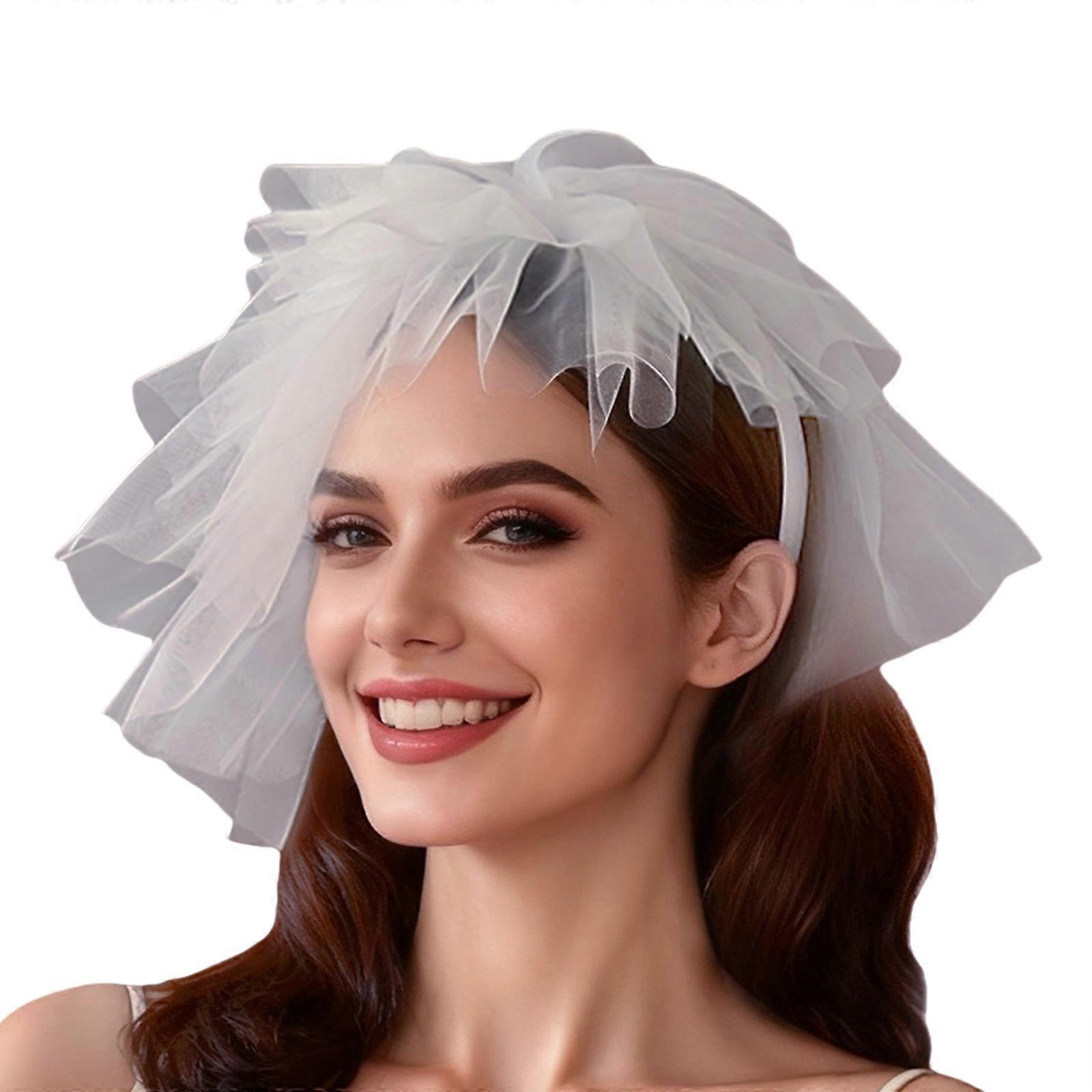 Comfortable Elastic Tulle Bride Fascinator Minimalist Design For Prolonged Wear During Receptions And Banquets White