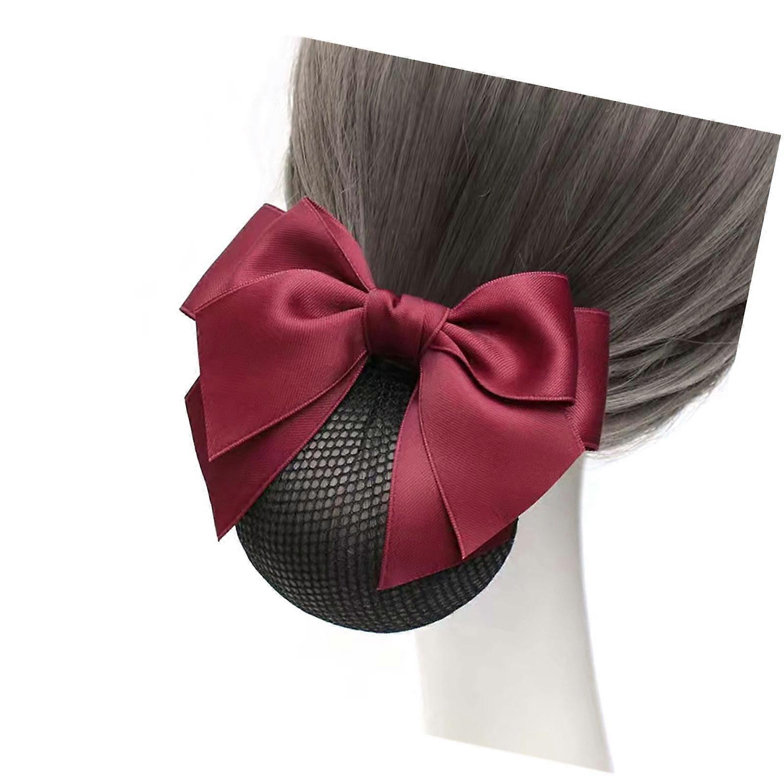 Hair Snood Bowknot Barrettes Delicate Bows Hair Clip for Women Girls Fashionable Hair Ornament Sweet Hairpin Wine red
