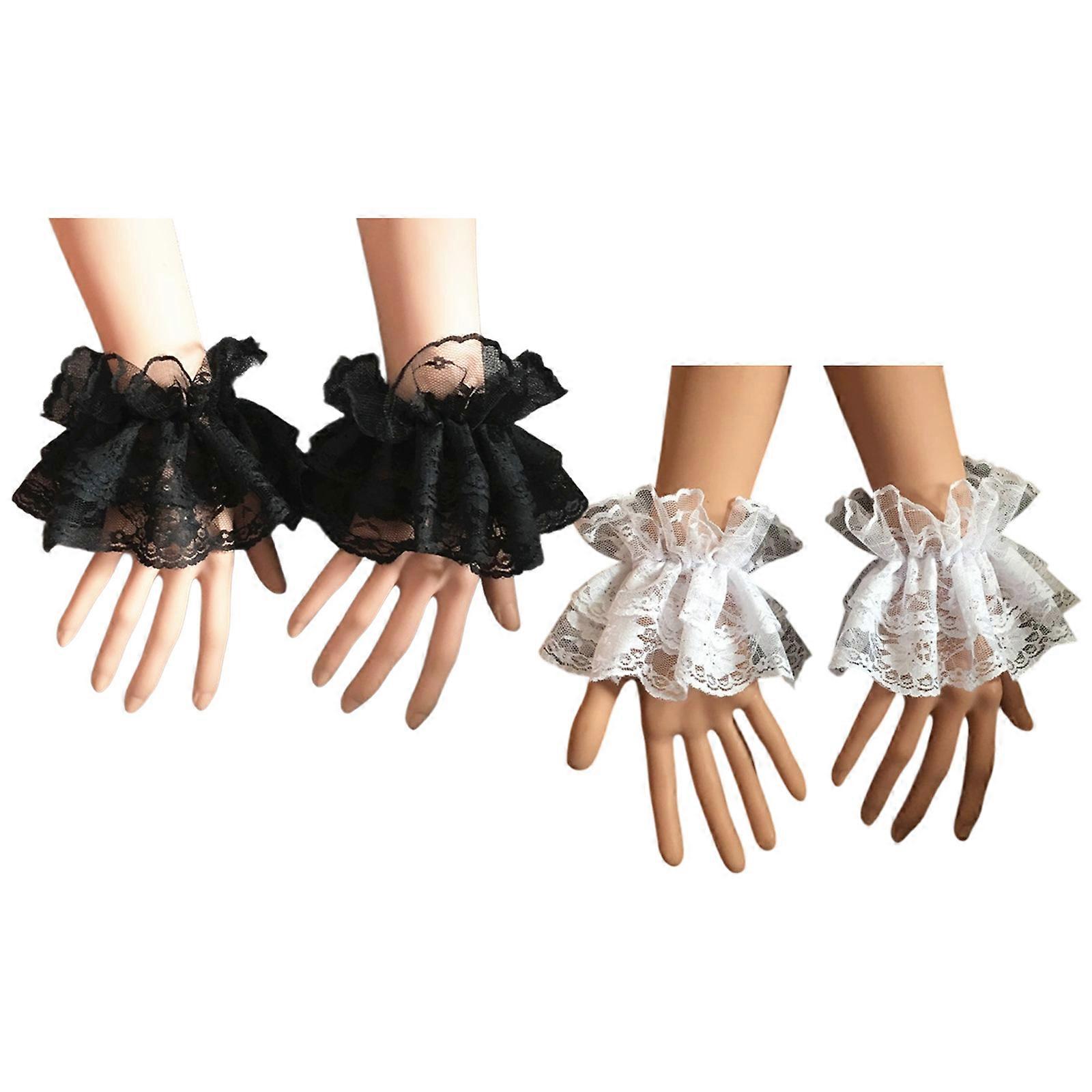 2Pair Lace Flower Arm Cuffs Anime Wrist Cuffs Sleeves Decorative Sleeves For Women Wedding and Cosplay Dressingup Multicolor