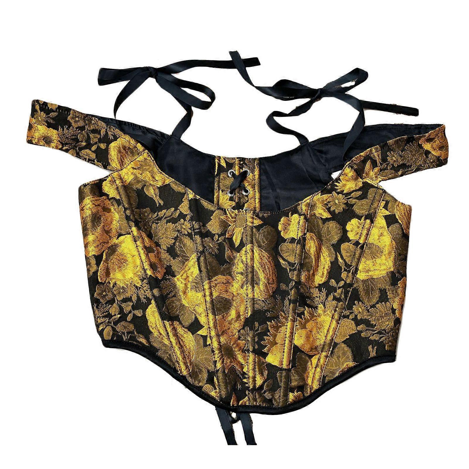 Adjustable Waist Trainer Corset with Back Laceup Design For Women Halloween and Victorian Theme Costume Accessory Yellow XL