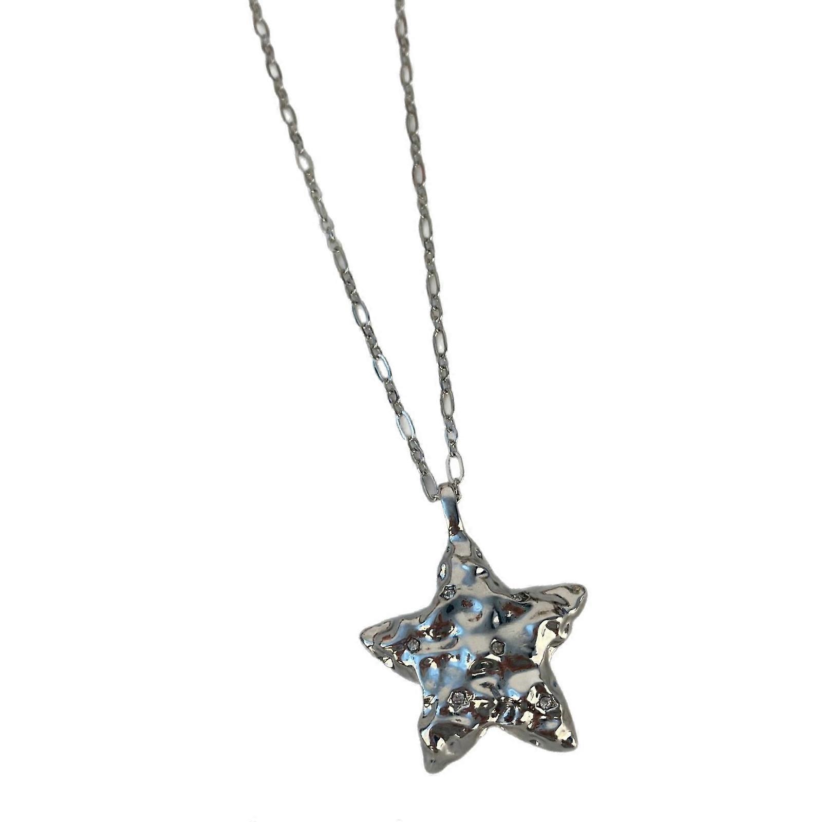 Elegant Silver Crinkle Pattern Neck Chain Moon Star Pendant Necklace Alloy Long Chain Jewelry Gift Multicolor