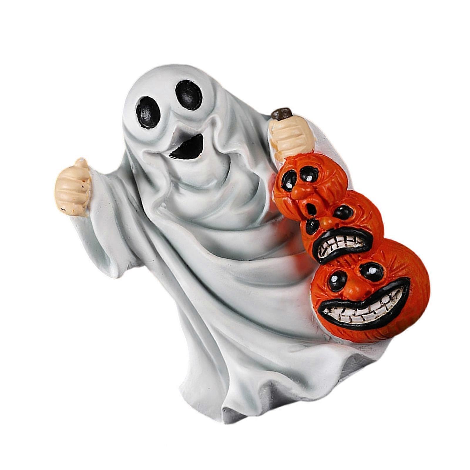 Miniature Halloween Ghostly Cats Pumpkin Sculpture Resins Craft Detailed Carving Desktop Bookshelves Festives Accent Gift Multicolor