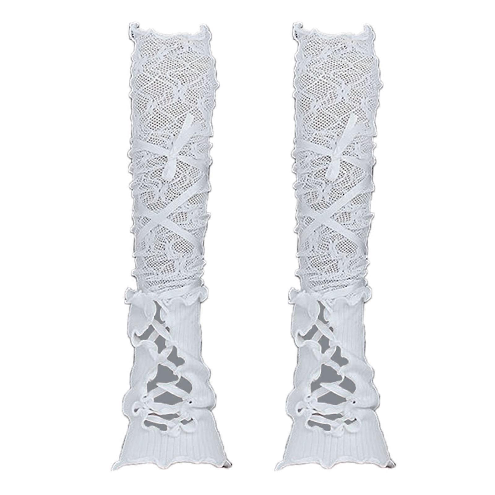 Lolitas Ballet Sleeves With Adjustable Ties Delicate Lace Design Retros Style Womens Fashion Accessory White