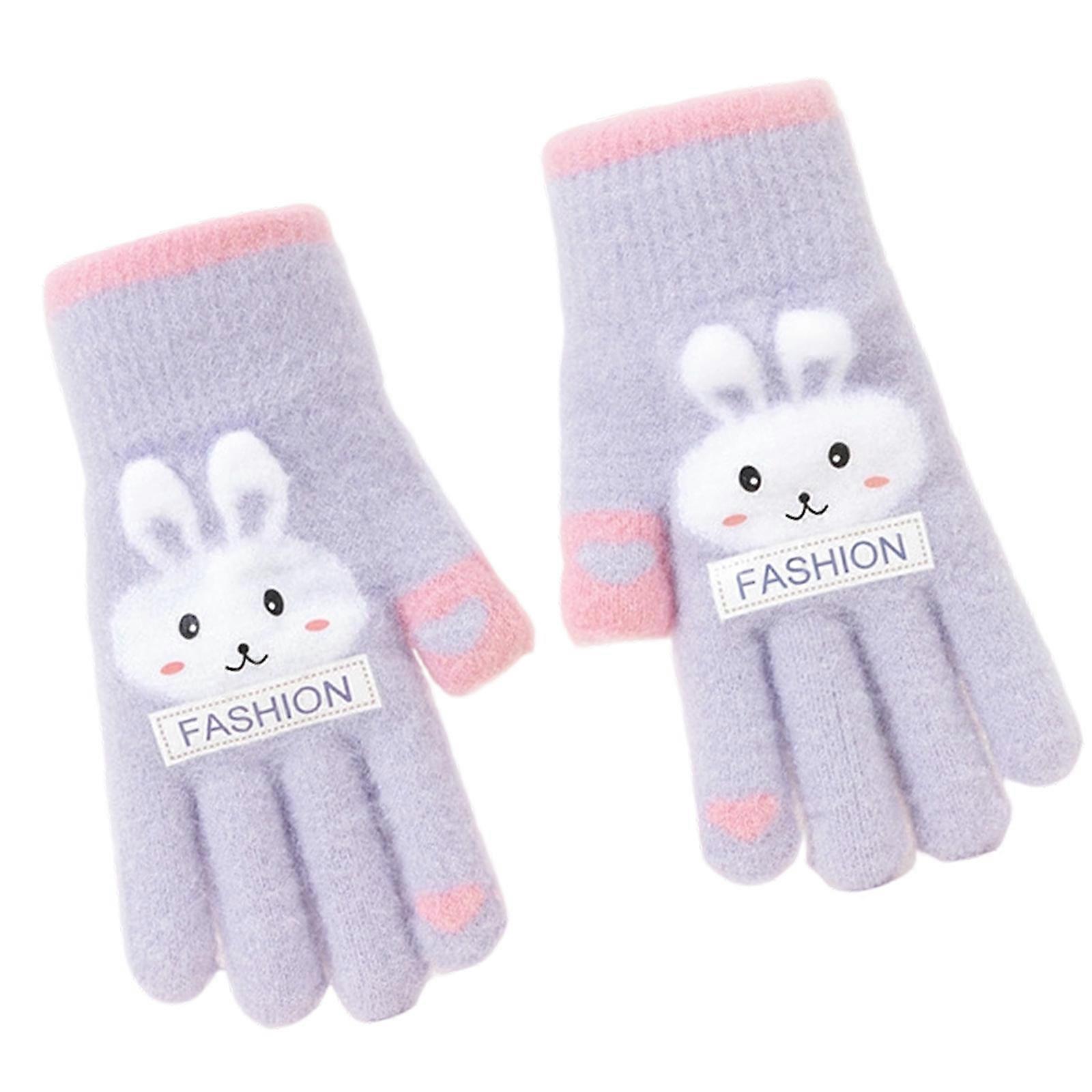 Warm Fleeces Gloves For Toddler Soft Cold Climates Protecting Fun Lovely Animal Pattern Outdoor Playing Purple