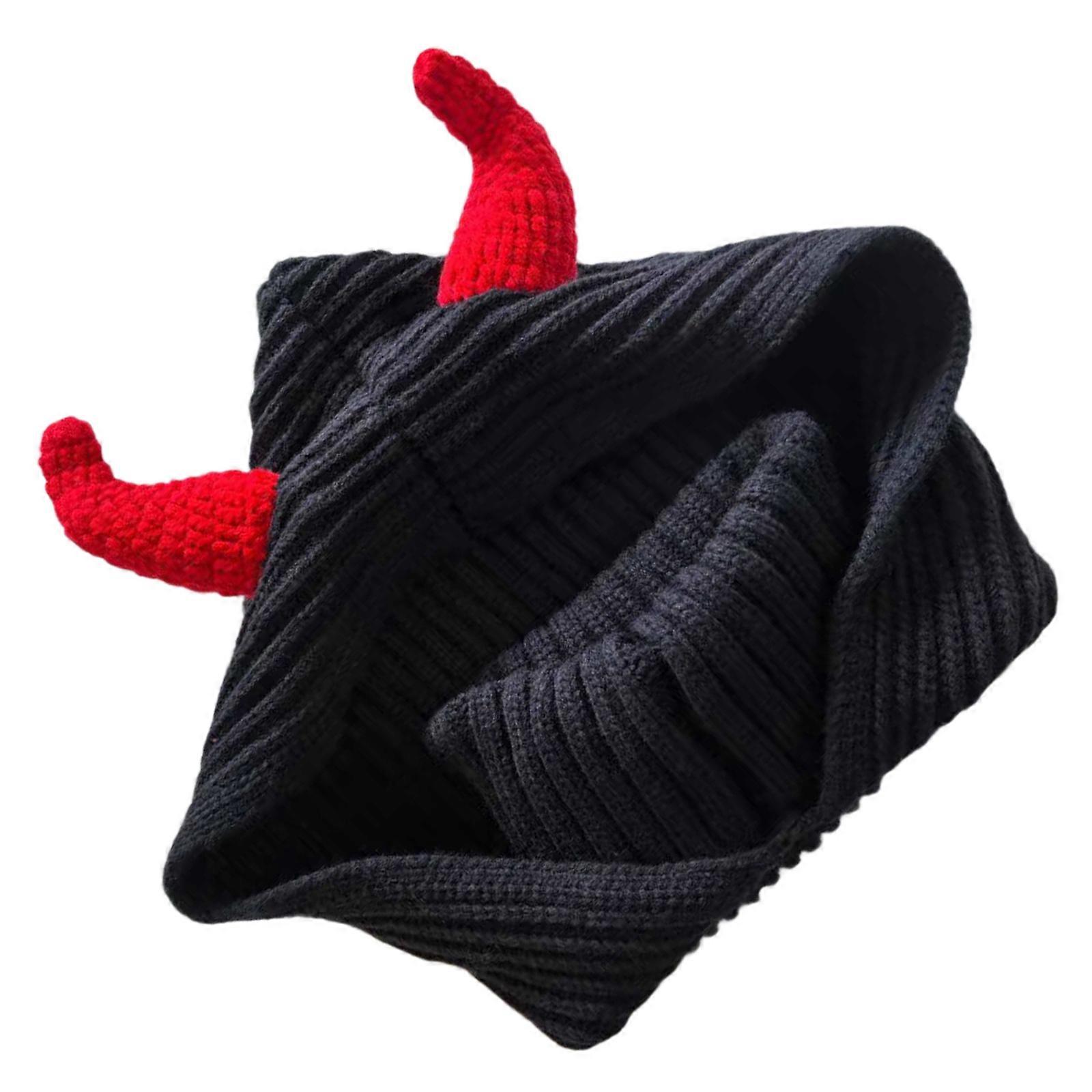 Bull Horn Balaclava Winter Hat Full Face Coverage Hoodie Scarf Hat For Women Men Outdoor Activity Halloween Party Black red